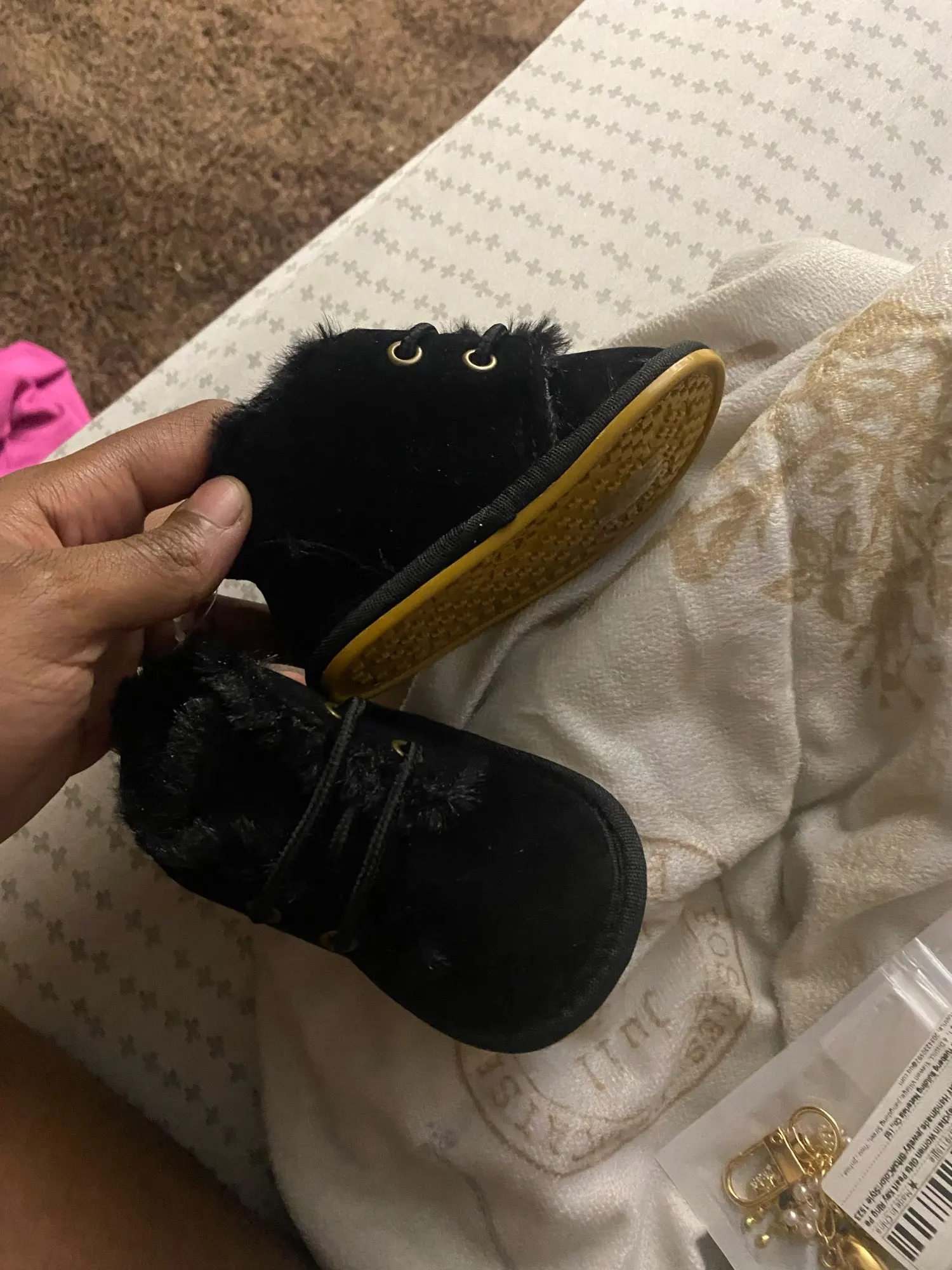 Warm winter faux sheepskin fur lined baby/toddler boots with outdoor pvc non-slip soles. These are exactly as pictured and described. I received the correct colour, size and quantity ordered. Thank you for sending everything i ordered.