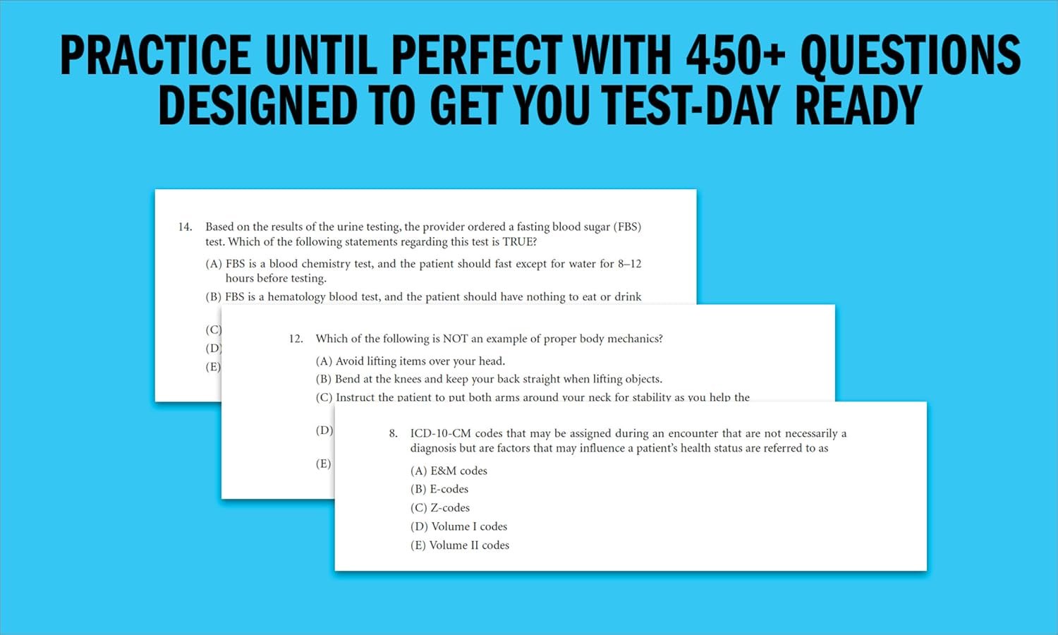 Review of all tested subjects for the Certified Medical Assistant (CMA) and Registered Medical Assistant (RMA) examsDiagnostic test to help you target areas for score improvement and make the most of your study timeFull-length practice test with 300 questionsEnd-of-chapter quizzes with detailed answer explanationsCase study–based practice questions to develop your critical thinking skills, now with 2 NEW case studies!Updated professional resources with advice for building an electronic portfolioNew discussions including: Covid-19, pediatric vaccinations, telehealthNew back-of-book Reference Guide with quick facts at your fingertips: normal vital signs, EKG leads & interpretation, order of draw, and more