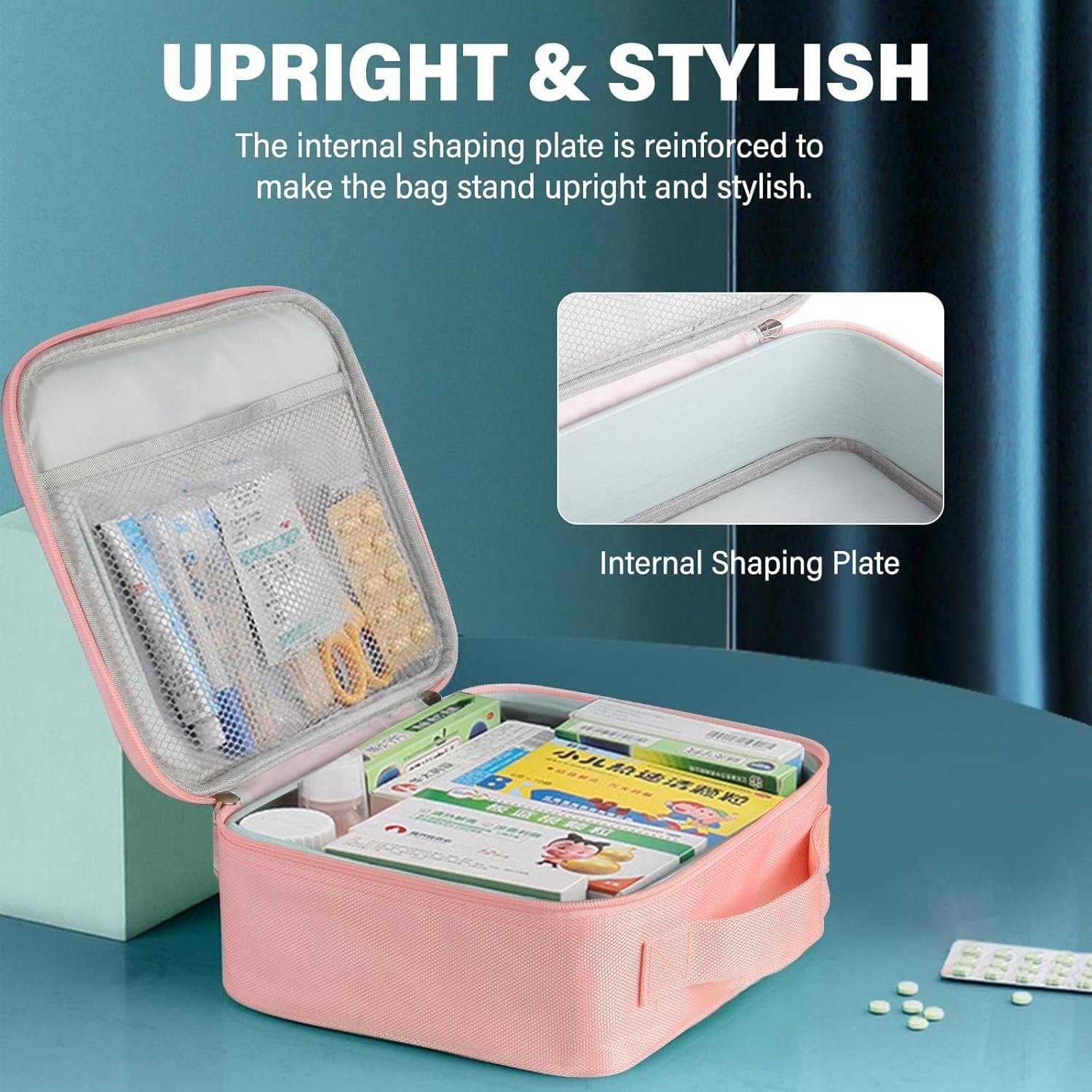 Medicine Bag for Traveling – Splash-Resistant, Hard Plastic Reinforced Edges, Oxford Fabric – Medical Supply Organizer Ideal for Everyday Home Use and Travel (Pink)