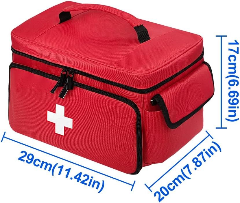 Large Capacity Storage Space: This first aid bag is equipped with a main compartment measuring 11.4*7.8*6.6 inches, which provides ample space for sorting and organizing personal bottles, medicines, vitamins, weekly pill organizer, emergency medicines and other medical supplies.
