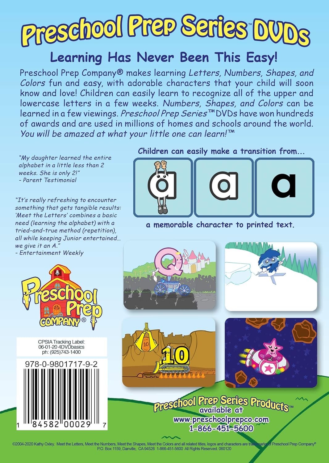 Includes: Meet the Letters Meet the Numbers Meet the Shapes Meet the Colors Preschool Prep Series products have won over 100 National Awards and are used in homes and school around the world! You will be amazed at what your little one can learn!