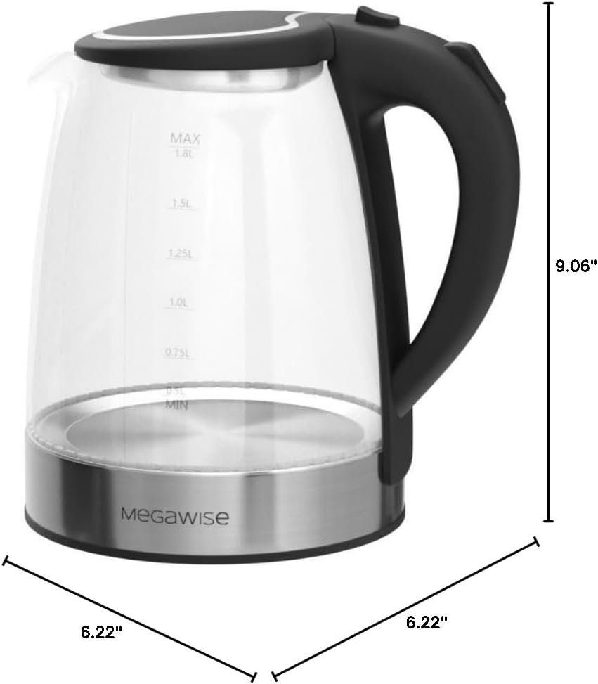 With a large 1.8-liter capacity, the Megawise Electric Kettle is perfect for serving multiple cups of tea, coffee, or hot cocoa in one go. Ideal for families, gatherings, or any situation where you need to boil larger quantities of water.