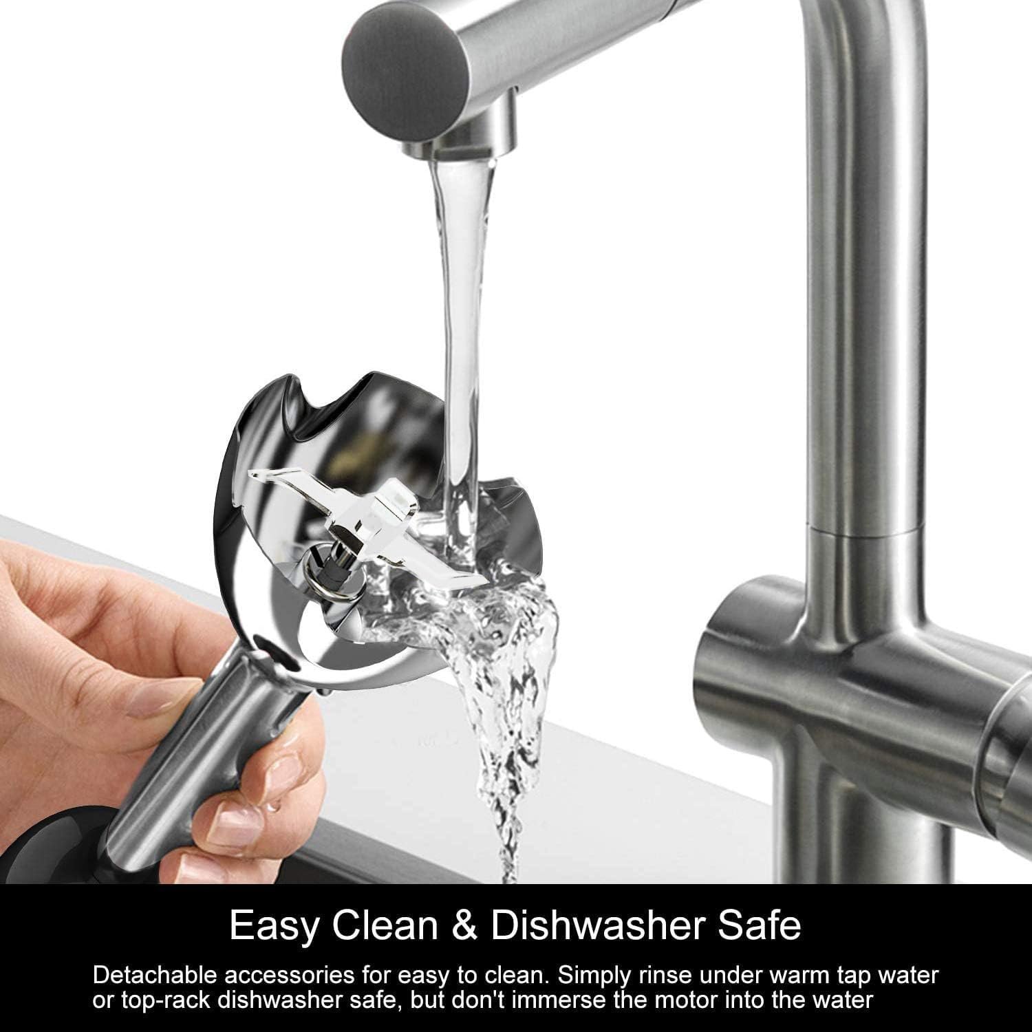 Ergonomic Design + Easy to Clean : The ergonomic handle gives a non-slip and comfortable grip when continuously blending ingredients. All attachments (excluding the motor part) are detachable, easy to clean, attachments dishwasher safe (without the main machine header) and BPA free. This blender is fully certified.