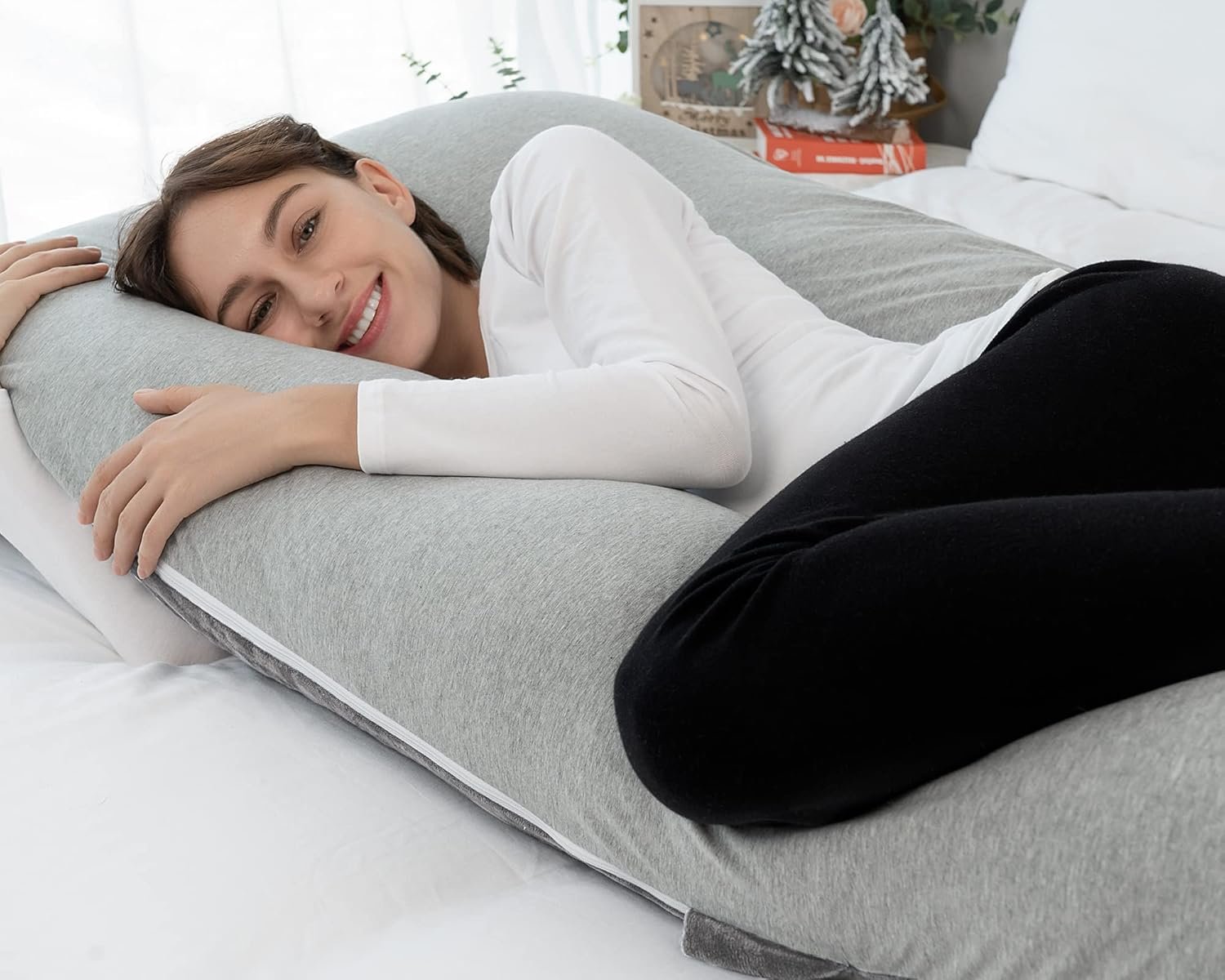 Meiz u-shaped pregnancy pillow replaces the need for multiple pillows and supports your full body, and helps you enjoy a restful sleep.