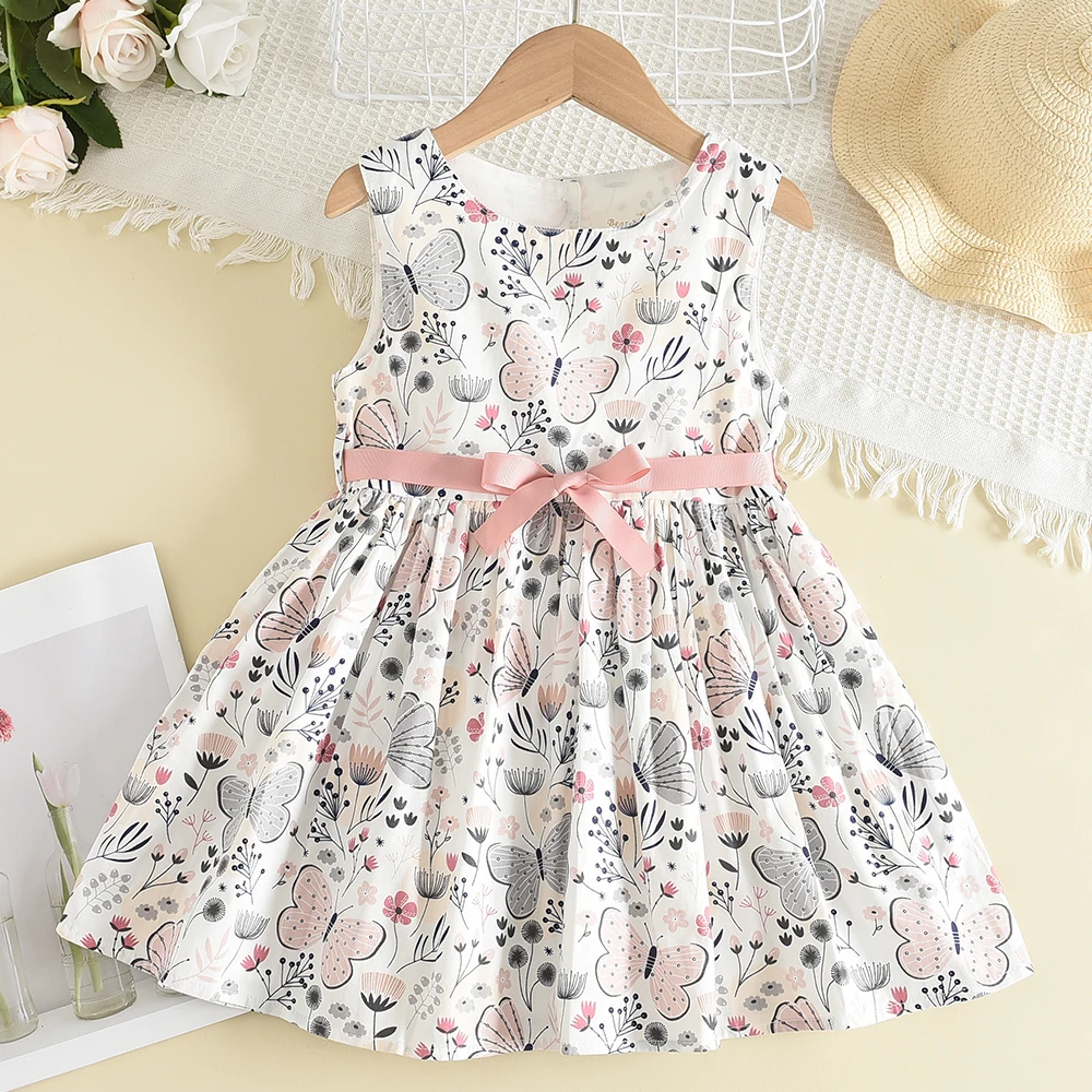 Melario Bow Girl Princess Dress New Summer Kid Girls Dress Floral Sweet Children Party Suits Butterfly Costume Children Clothing