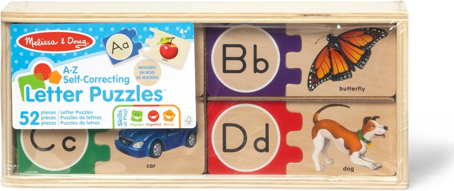 Melissa & Doug Self-Correcting Alphabet Wooden Puzzles With Storage Box (52 pcs)