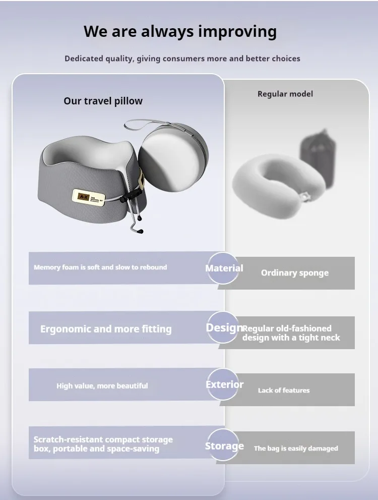 Memory Foam U-shaped Pillow Neck Support Travel Portable Business Sleeping Aid Airplane Pillow Neckrest U-pillow