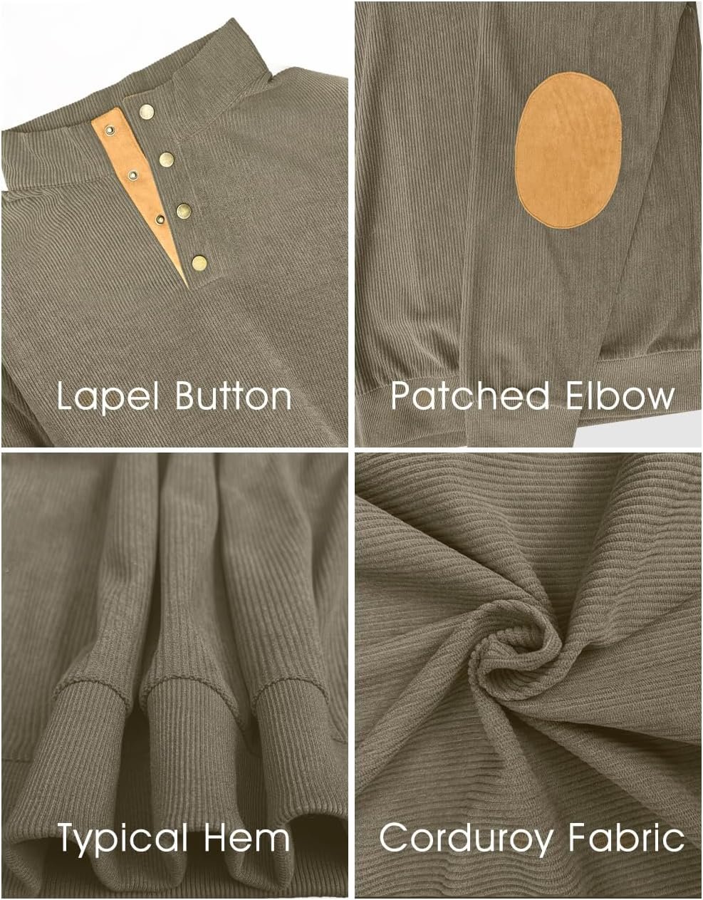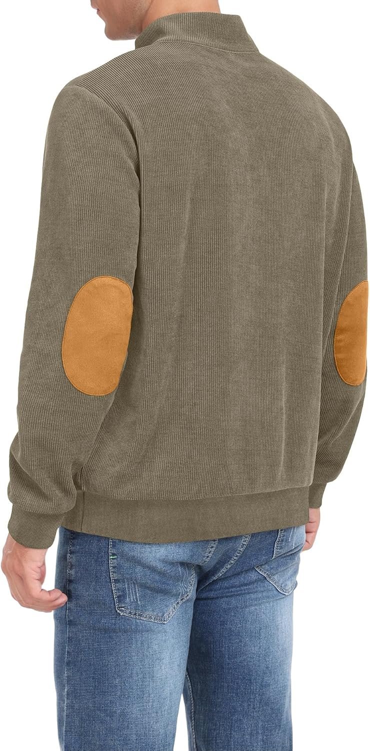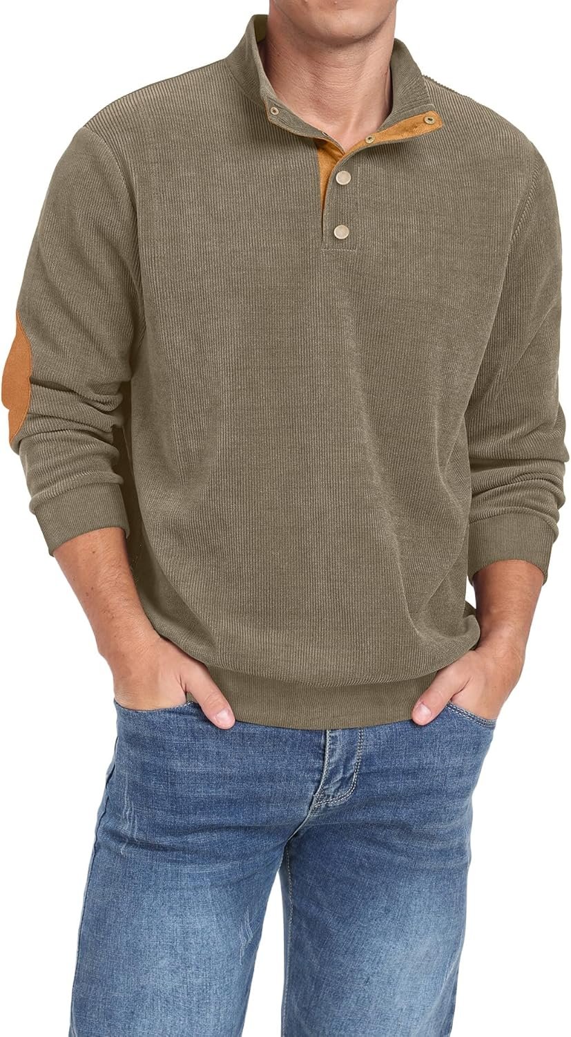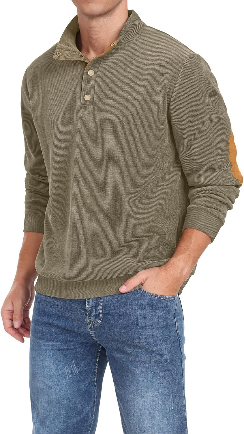 Mens Casual Corduroy Sweatshirt Long Sleeve Stand Collar 1/4 Button Up Pullover Fall Polo Sweaters