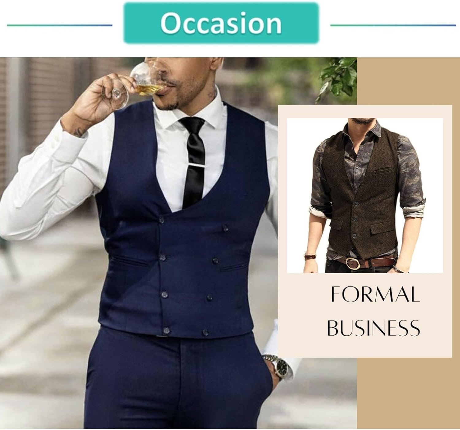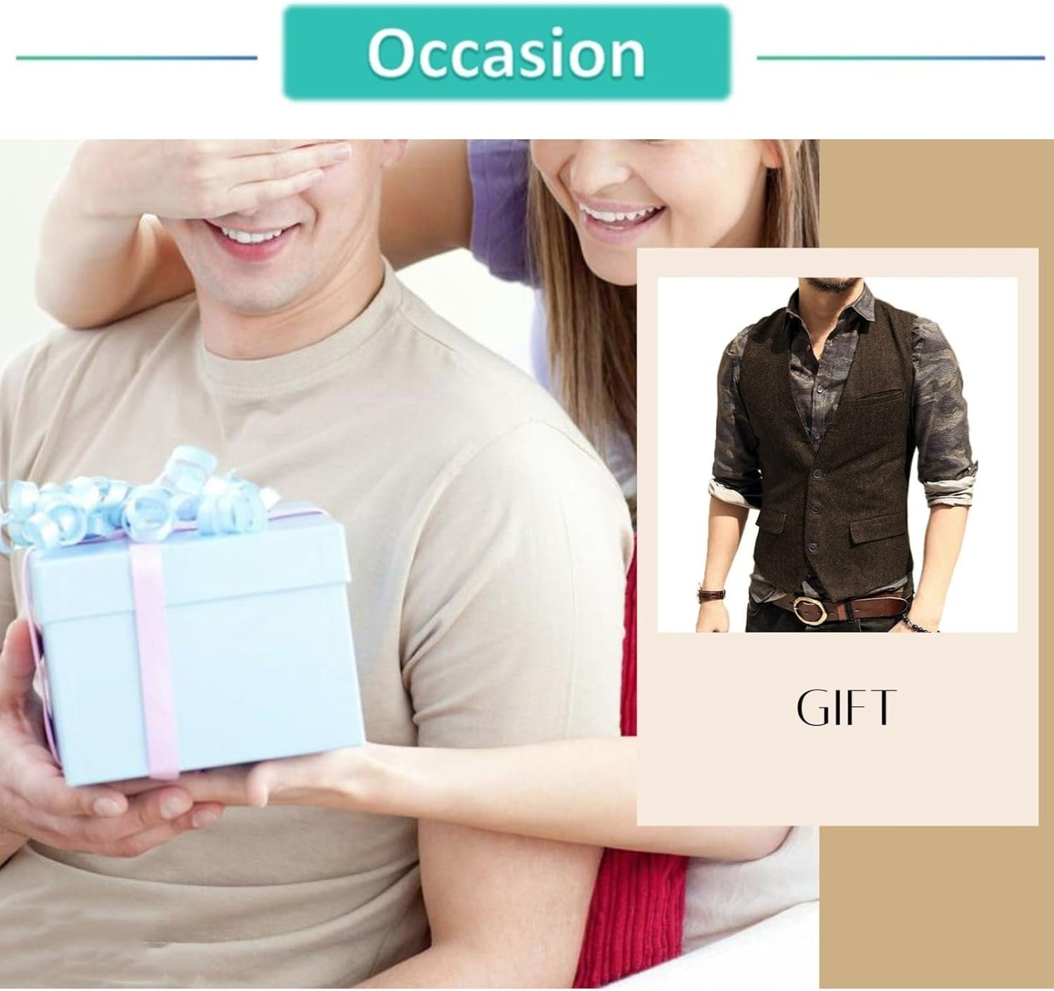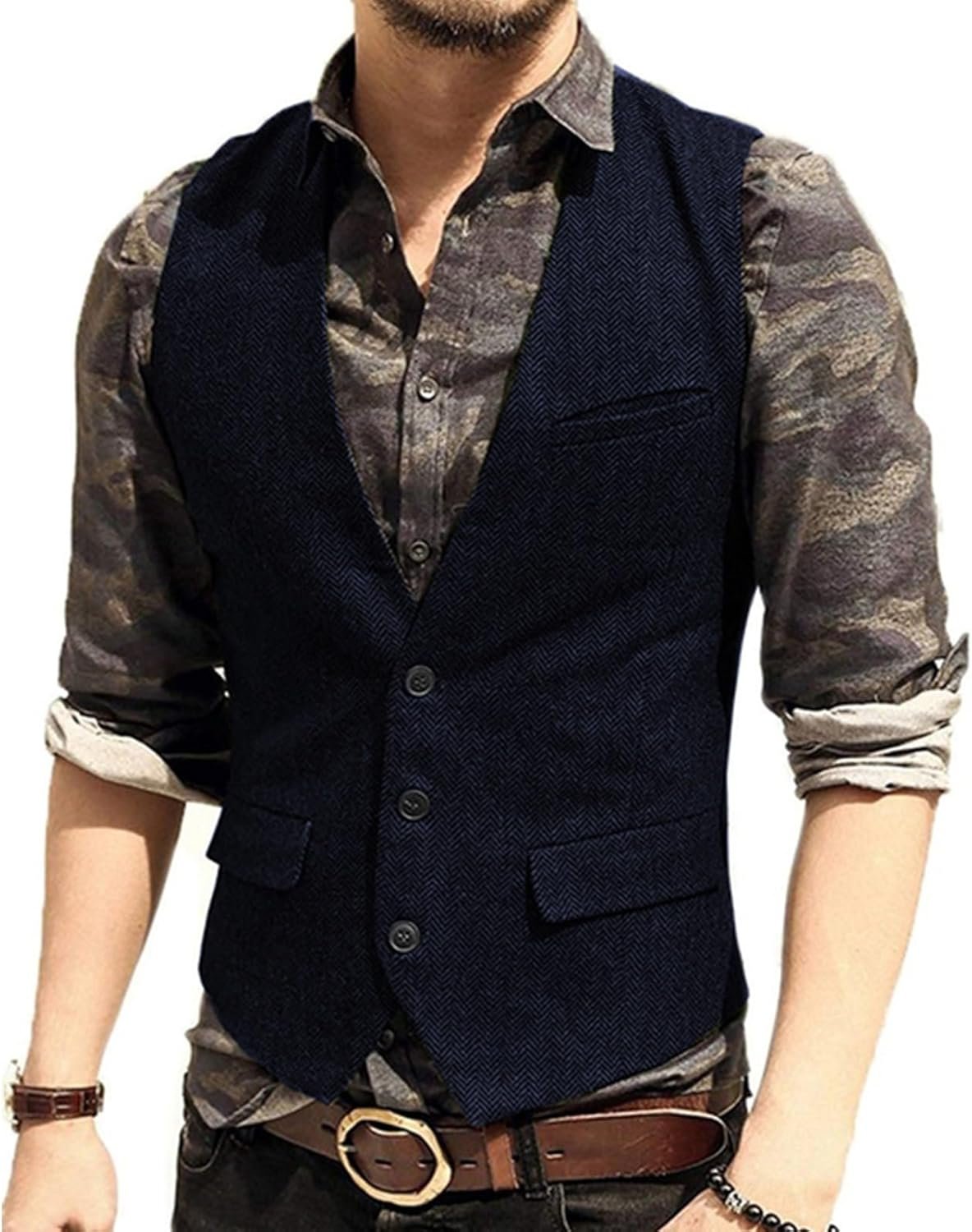 Men’s Casual Plus Size Vest with 3 Pockets Wedding Herringbone Slim Fit Waistcoat Jacket Tank Top for Prom,Daily