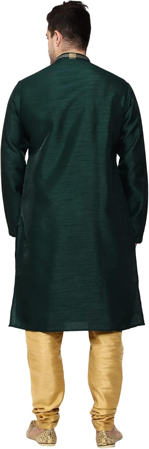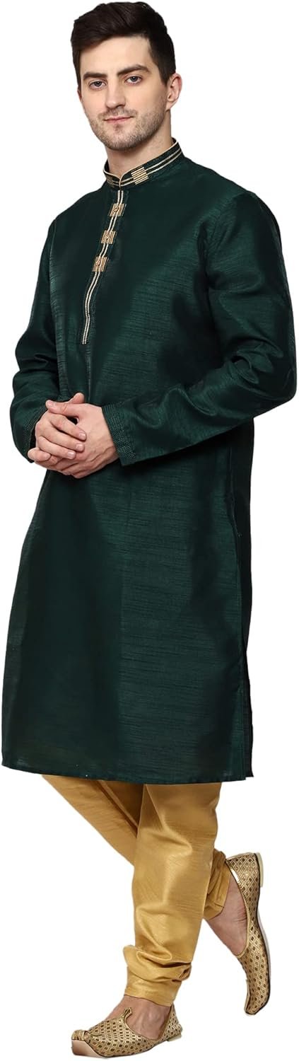 Men’s Tunic Art Silk Kurta Pajama and Scarf Suit Set Indian Clothing Wedding Party Dress Gifts Items