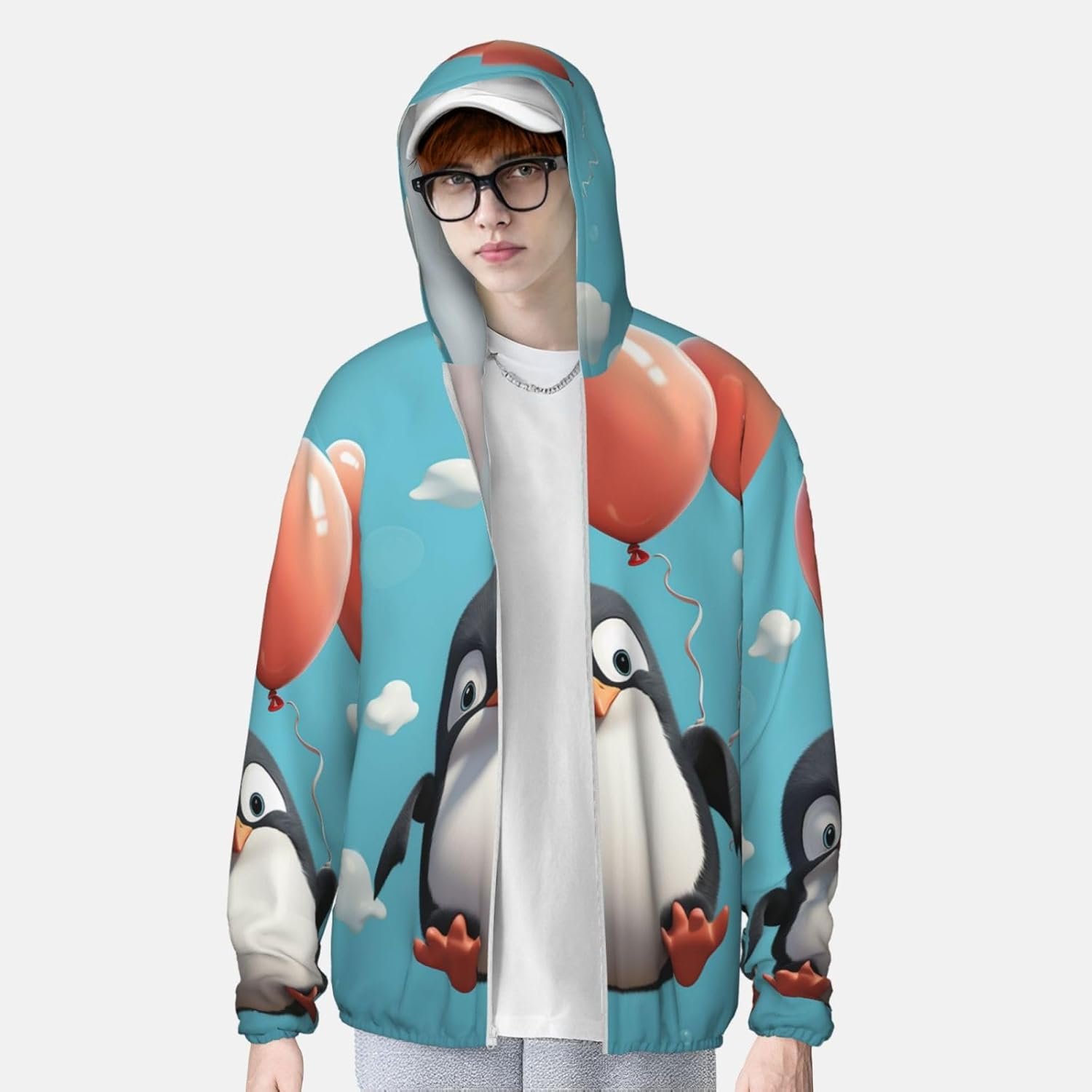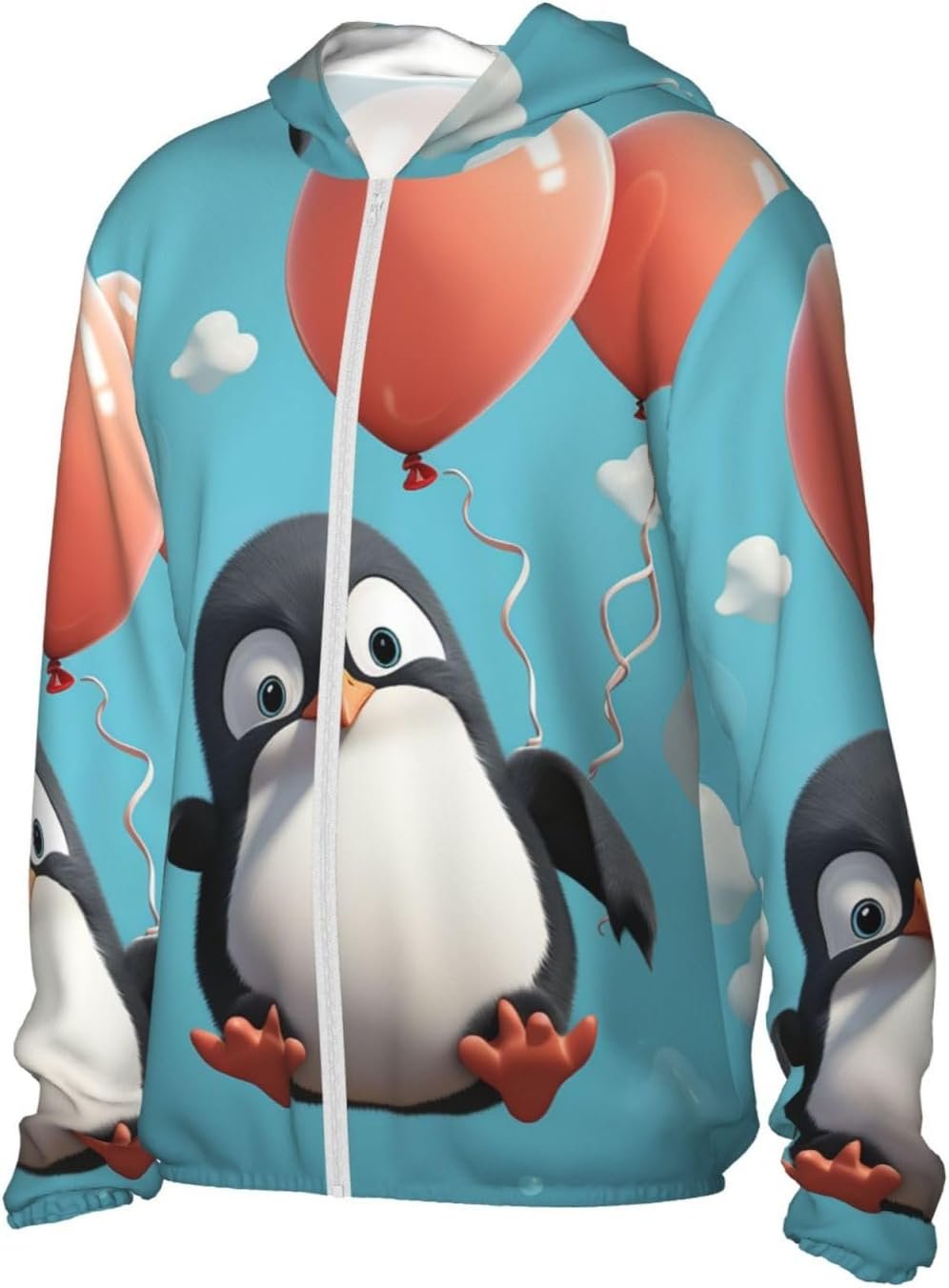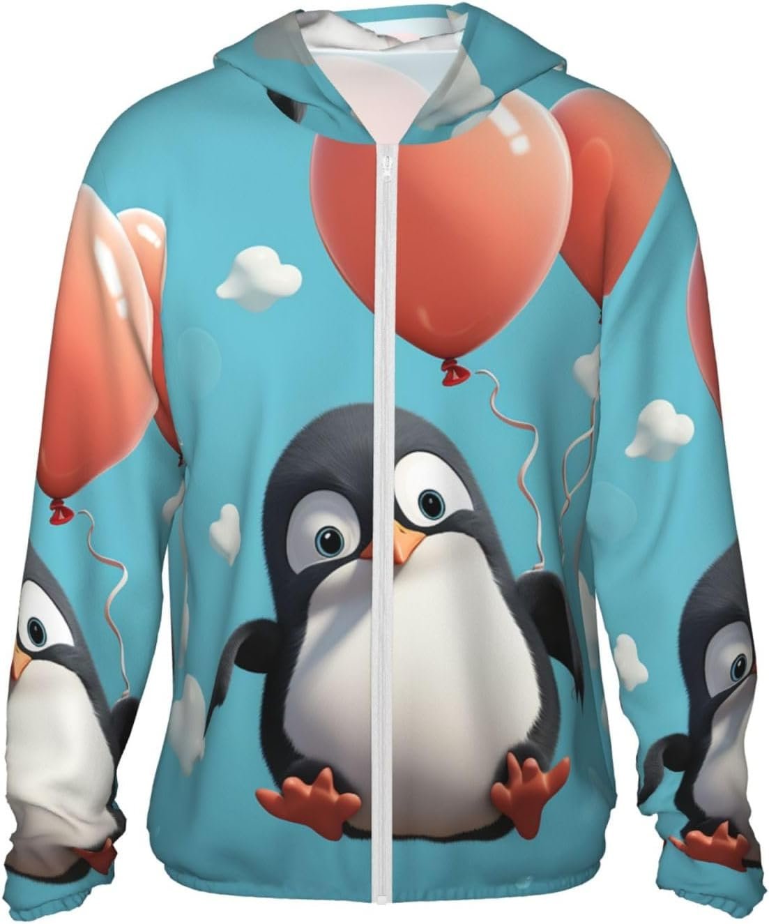 Men’s UPF 50+ Sun Protection Hoodie Jacket Cute Penguin with Balloon Lightweight Long Sleeve Quick Dry Rash Guard Sun Shirt for Fishing X-Large Black