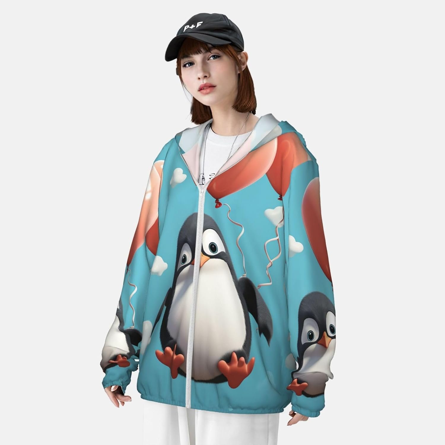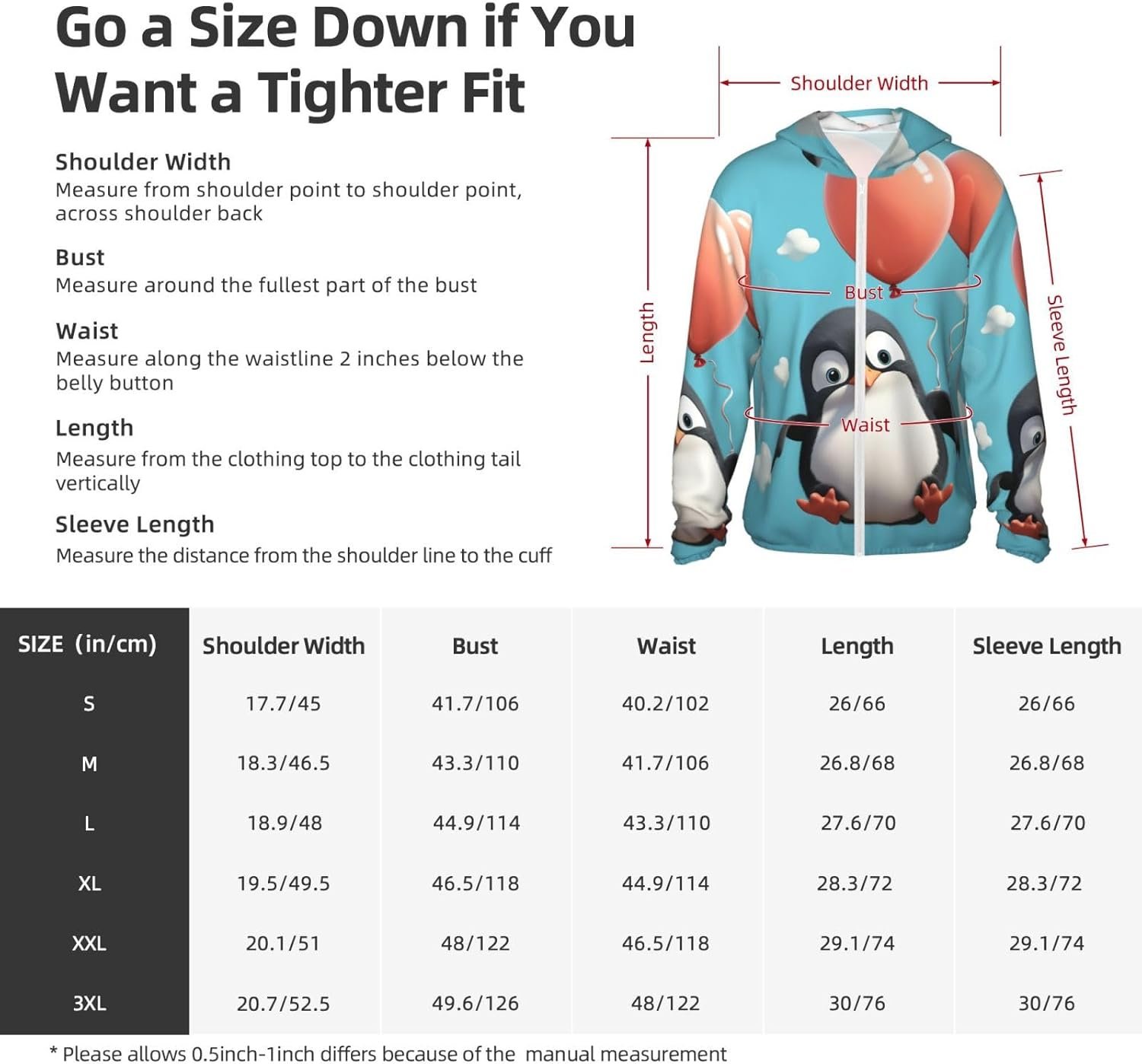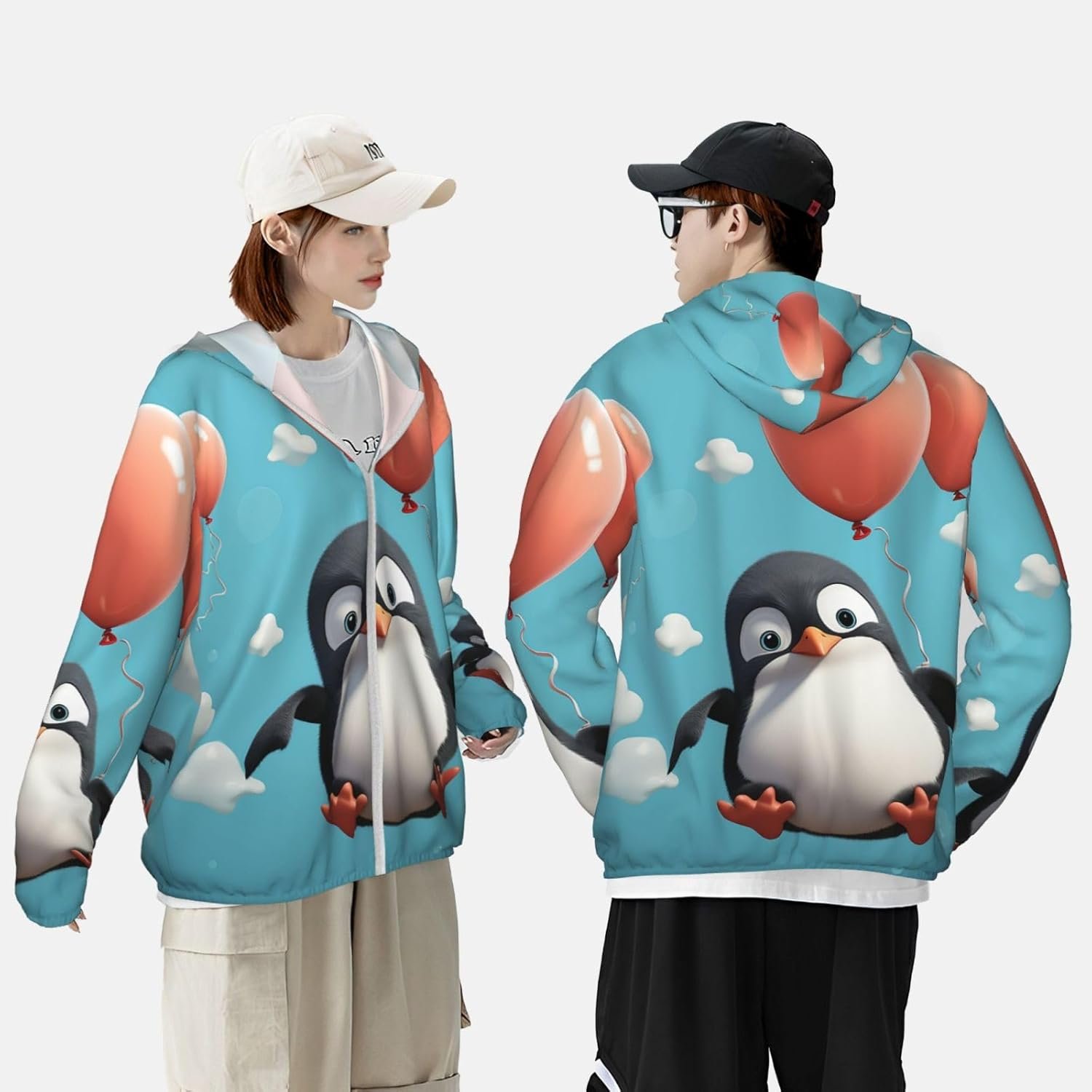Men’s UPF 50+ Sun Protection Hoodie Jacket Cute Penguin with Balloon Lightweight Long Sleeve Quick Dry Rash Guard Sun Shirt for Fishing X-Large Black