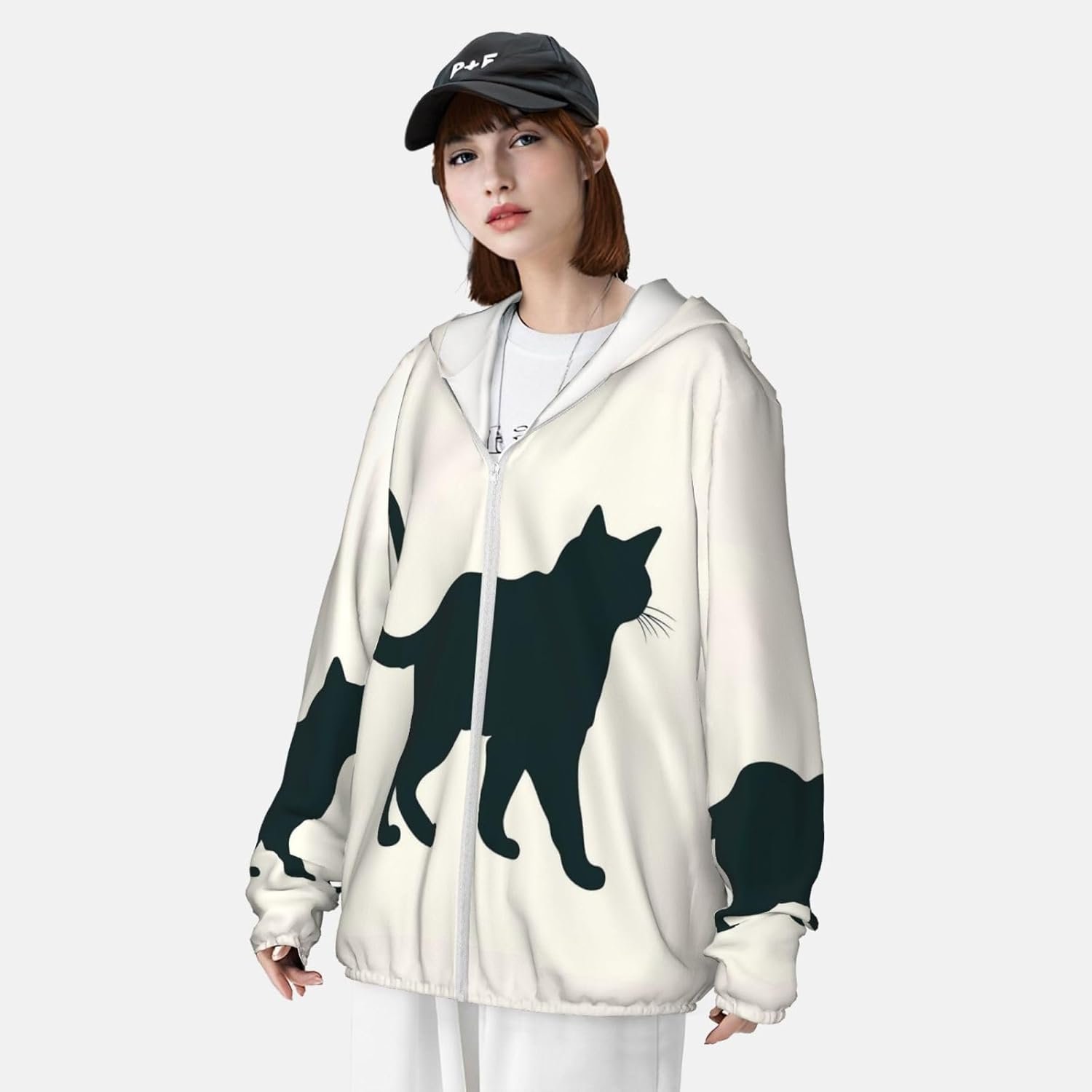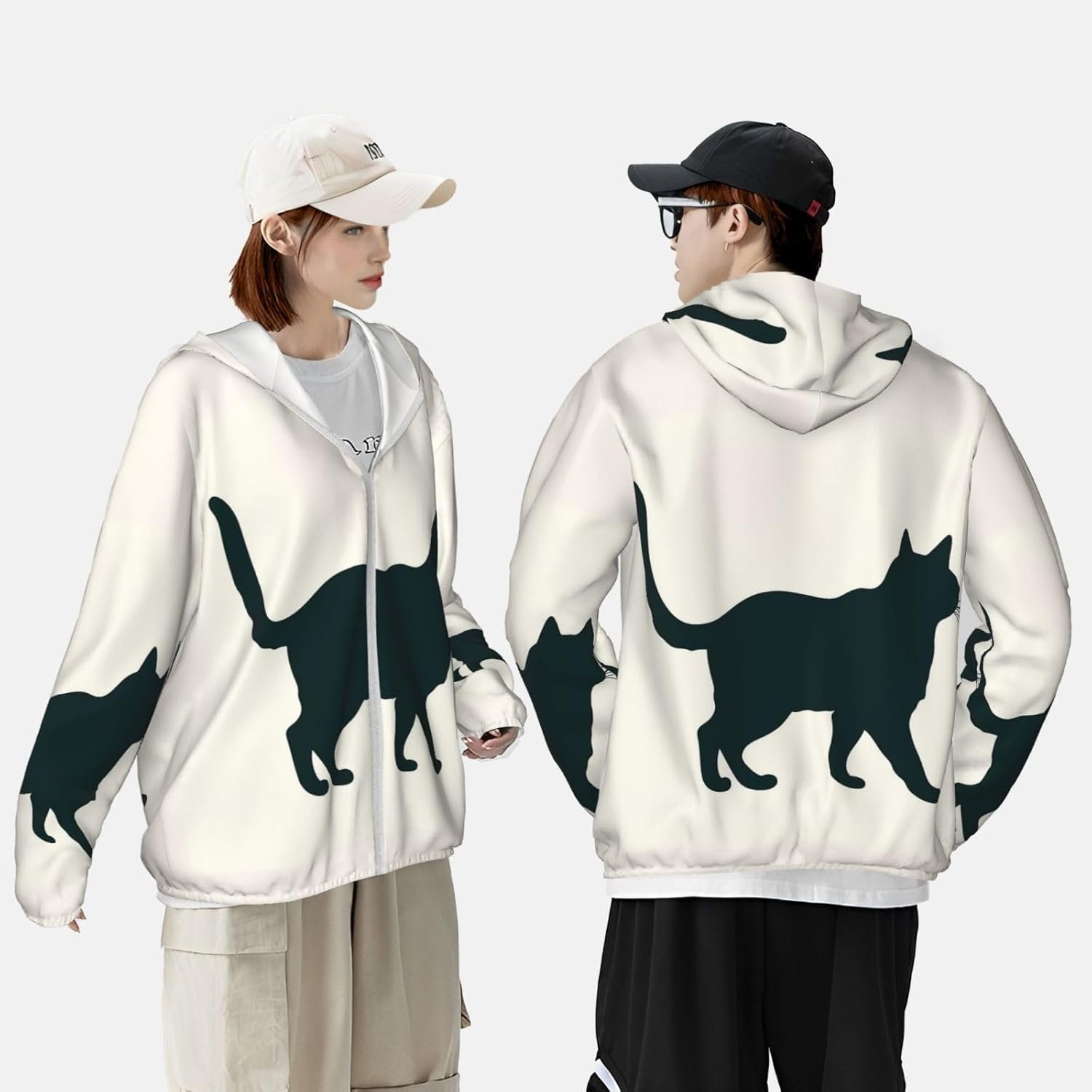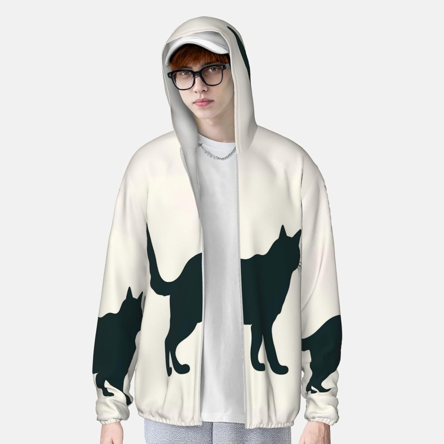 Men’s UPF 50+ Sun Protection Hoodie Jacket Happy Walking Cat Lightweight Long Sleeve Quick Dry Rash Guard Sun Shirt for Fishing X-Large Black