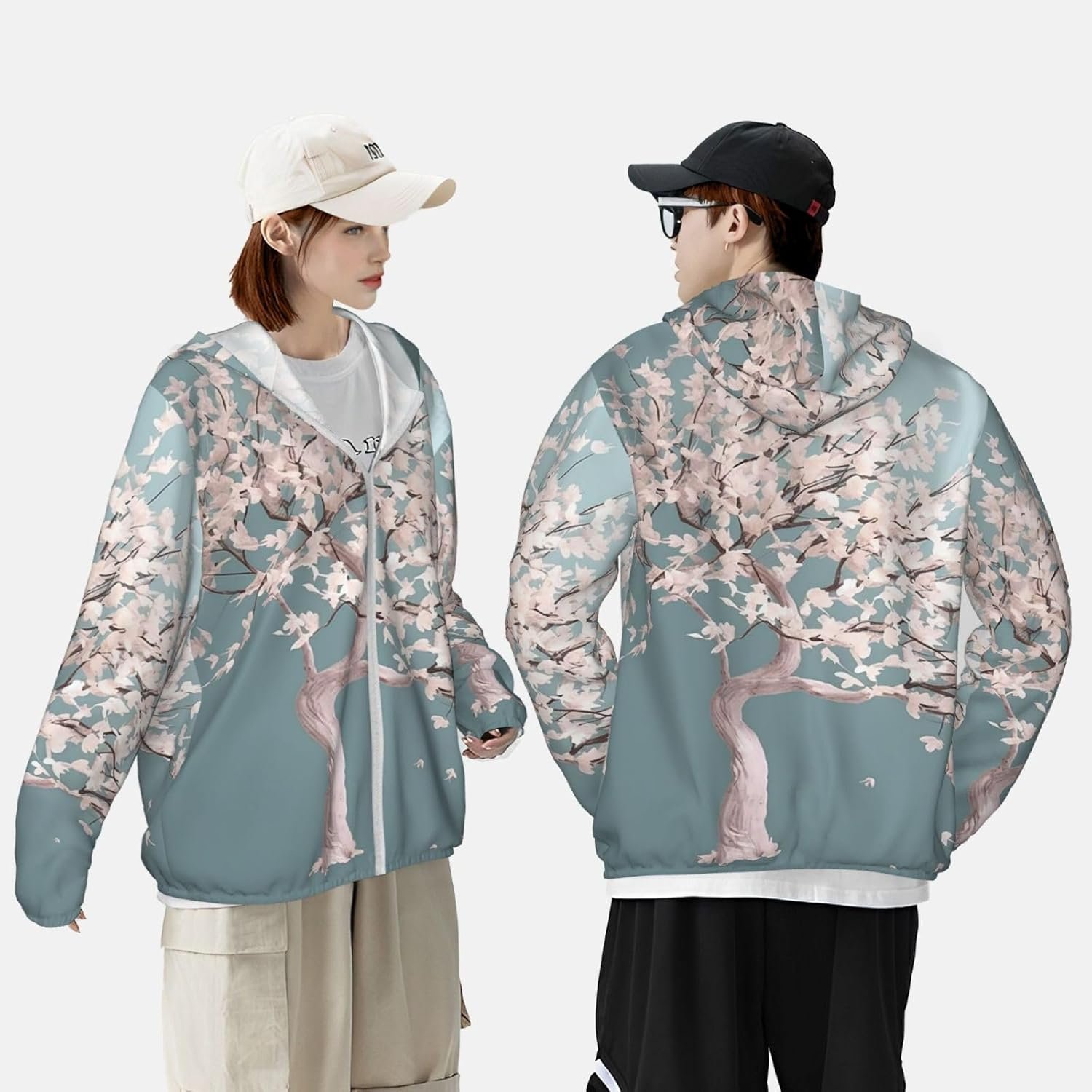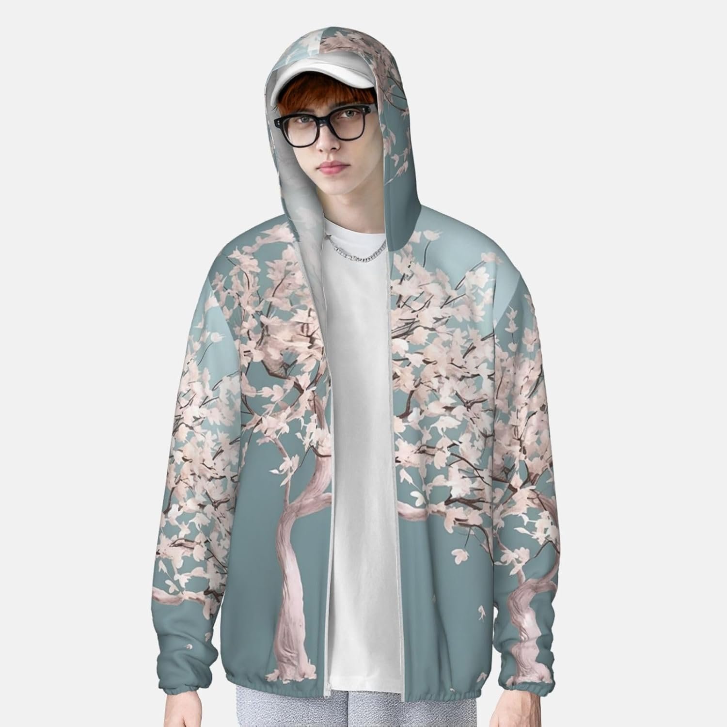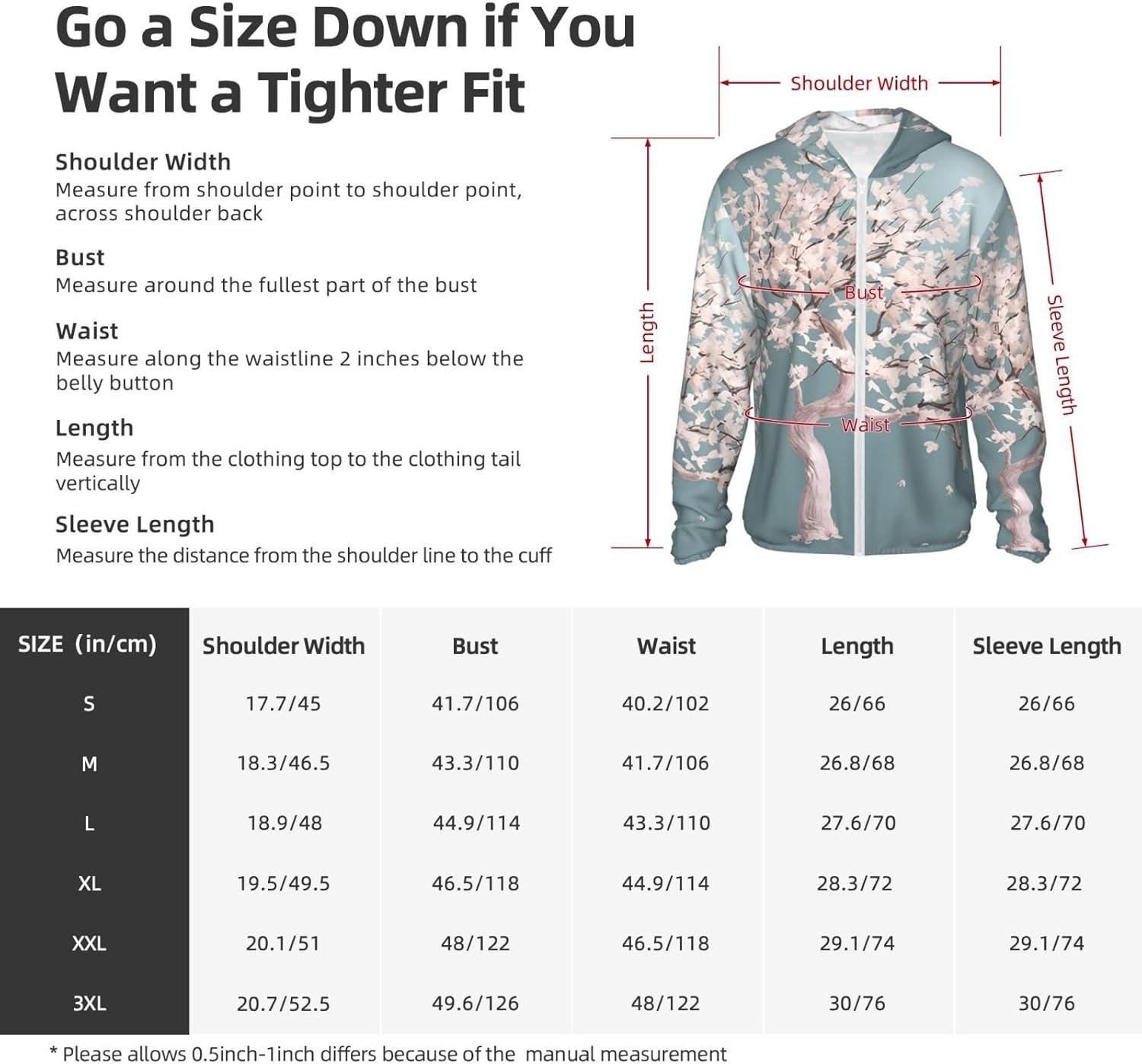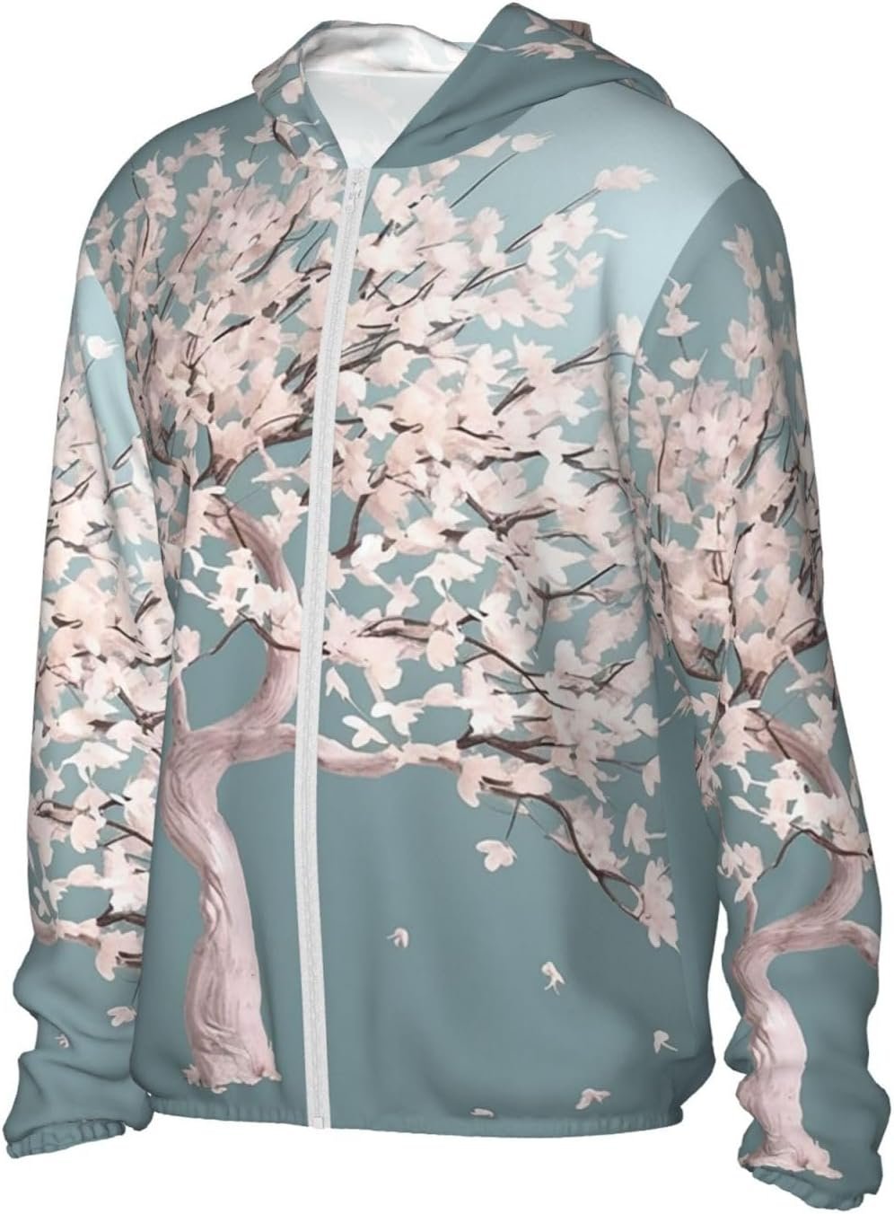 Men’s UPF 50+ Sun Protection Hoodie Jacket Large Cherry Blossom Tree Lightweight Long Sleeve Quick Dry Rash Guard Sun Shirt for Fishing Medium