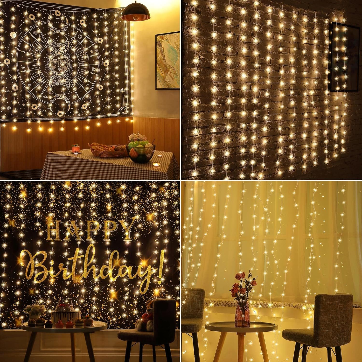 [Good Decoration for Any Occasions] the LED curtain lights are waterproof, suitable for indoor and outdoor decorations. Widely decor for bedroom, back yard, balcony or patio. And these tapestry lights are nice for St. Patrick’s Day, Christmas, Valentine’s Day, wedding, festival party, birthday, graduation decor