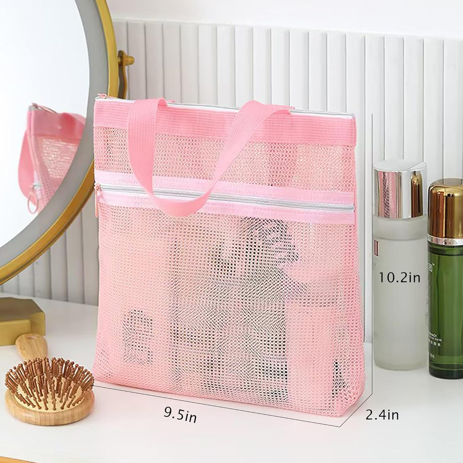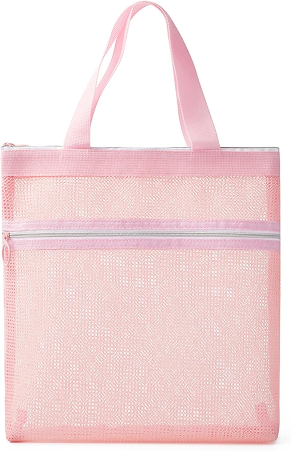 Mesh Shower Caddy Portable Shower Bag with Zipper & 2 Pockets.Tote Ideal for Gym, Travel, Camp, Beach, for Sunscreen, Dorm & College Essentials,Pink