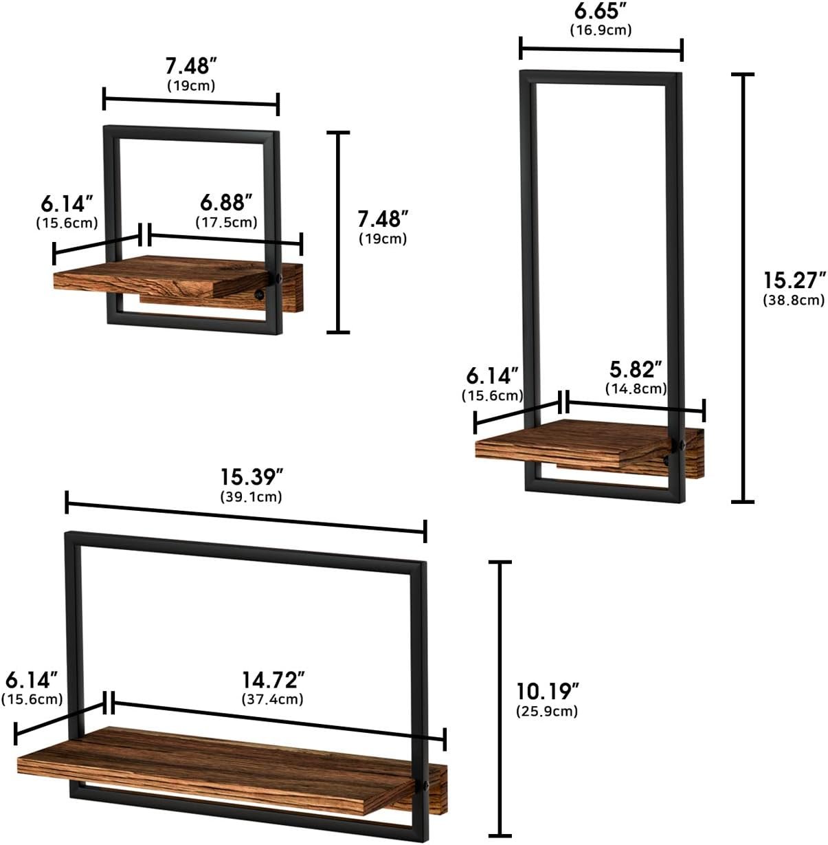 [EASY TO ASSEMBLE] Easy to install with the included hardware and instructions. Just decide where you wish to place it on the wall. Small shelf size: 7.48″ x 6.88″ x 6.14″, medium: 15.27″ x 5.82″ x 6.14″, big: 10.19″ x 14.72″ x 6.14″