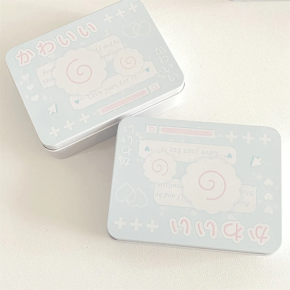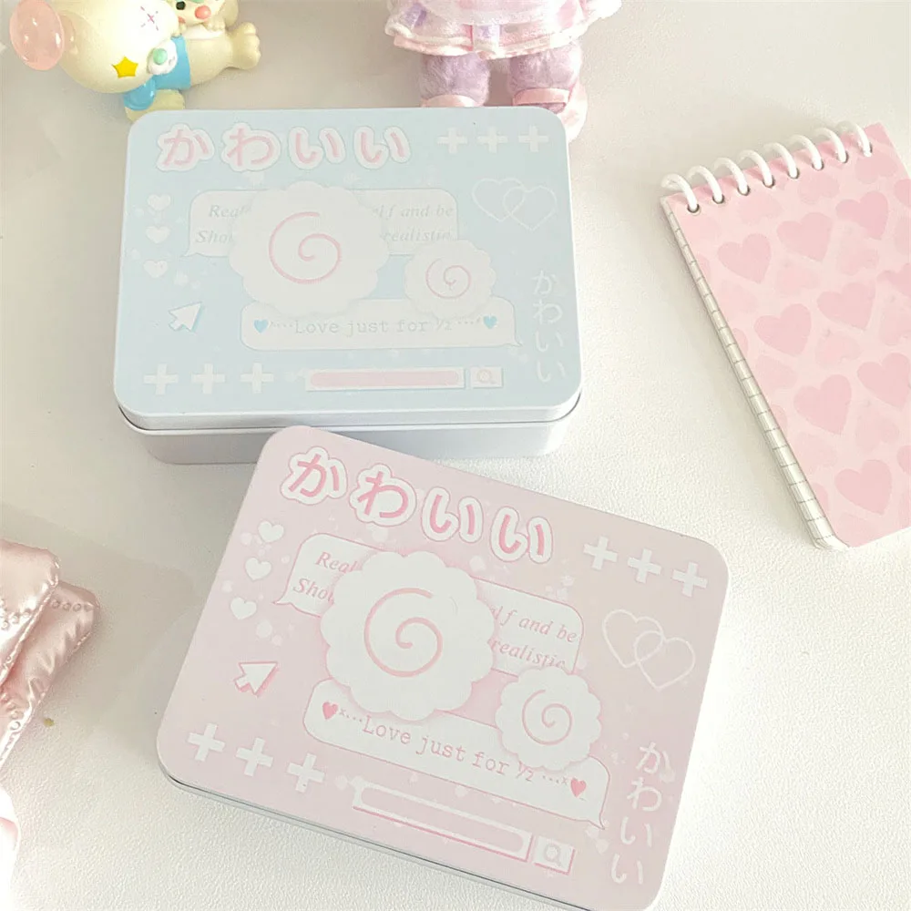 Metal Rectangular Empty Tin Box Cartoon Fish Cakes InsIdol Photocards Holder Jewelry Organizer Sticker Storage Box Stationery