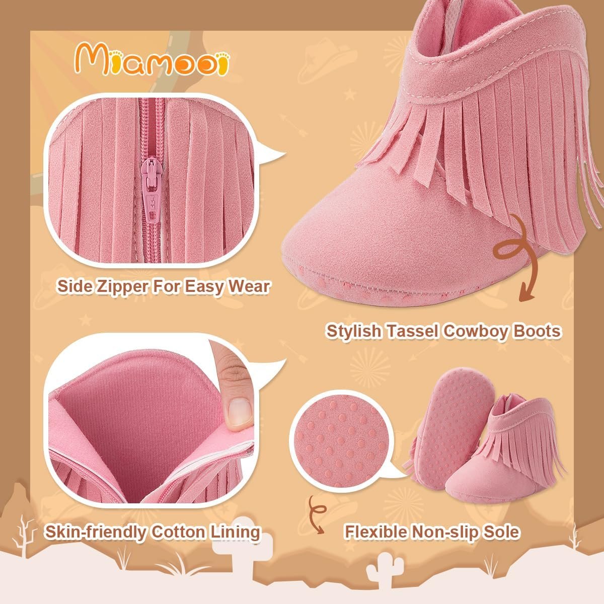 Miamooi Infant Baby Boys Girls Booties Newborn Cozy Fleece Warm Winter Boots Toddler Non-Slip Lace Up First Walking Shoes