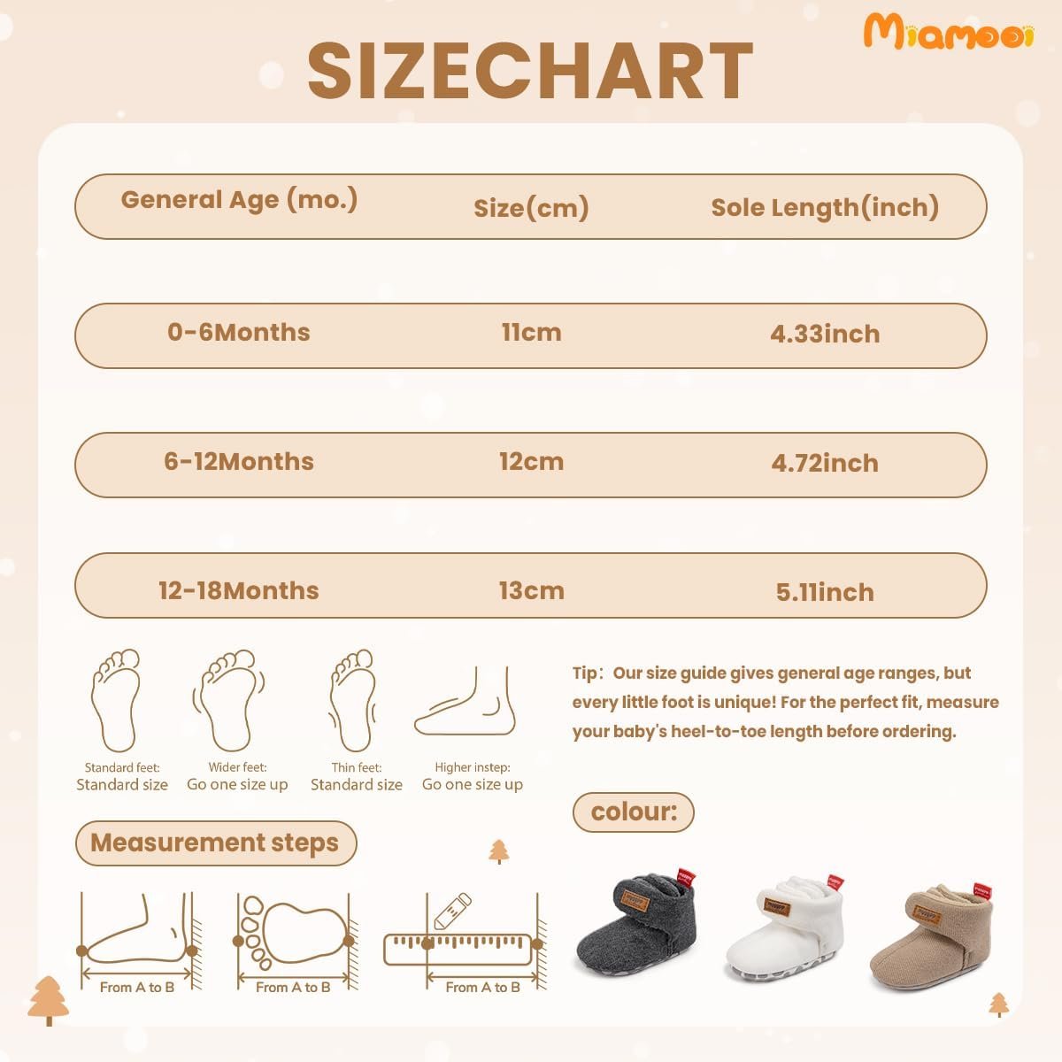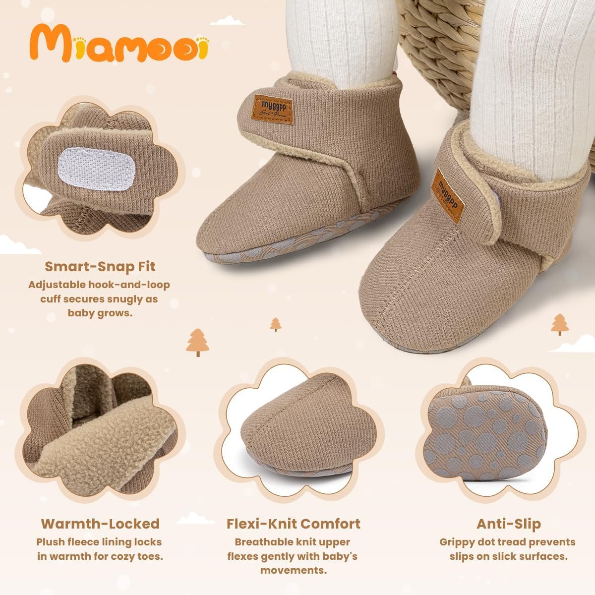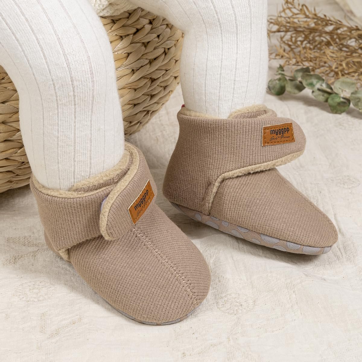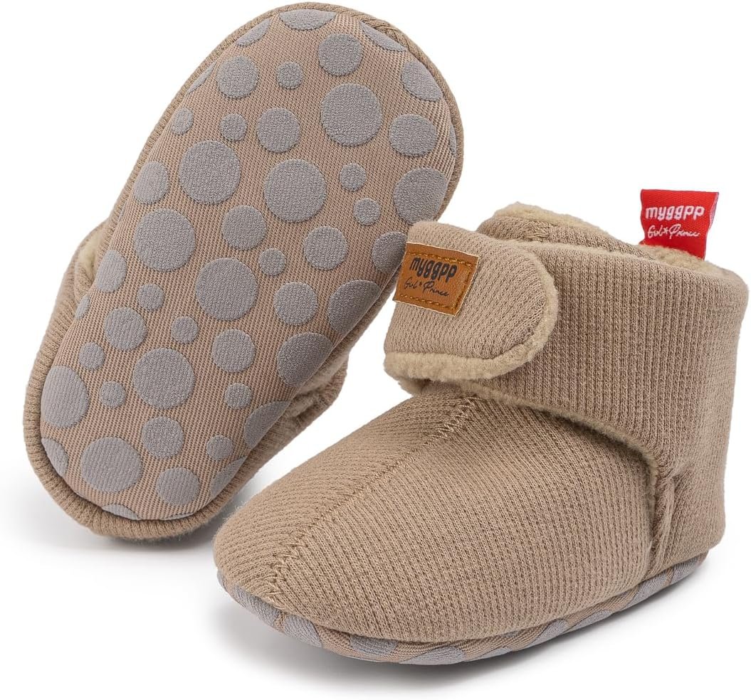 Miamooi Infant Baby Girls Boys Cotton Booties Newborn Winter Warm Fleece Cozy Slippers Toddler Non-Slip Ankle Boots First Walker Crib House Socks Shoes 3-18 Months