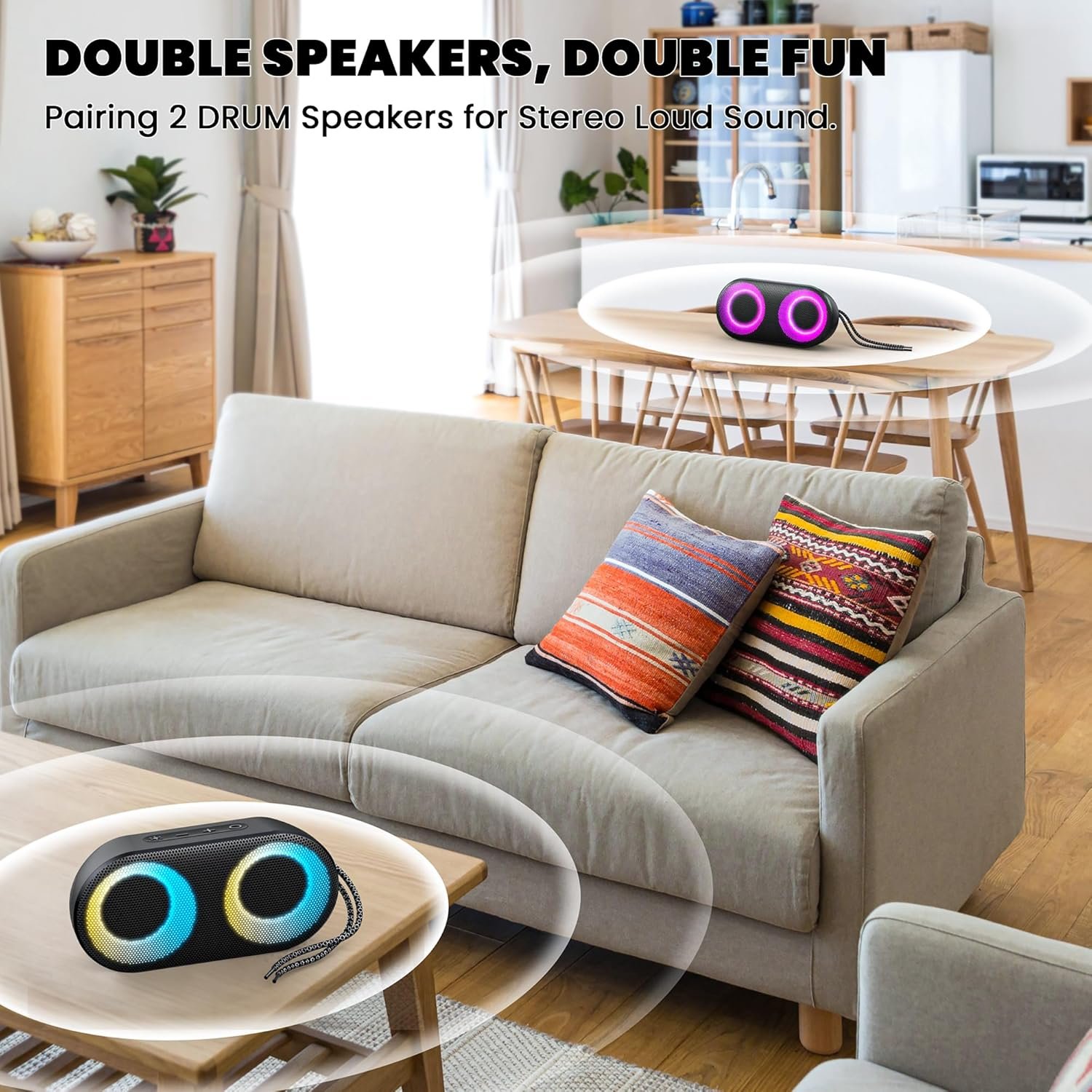 QUICK-DRY & IPX7 WATERPROOF SPEAKER: MIATONE Drum Shower speaker features a plastic shell with a metal grille, making it both durable and stylish. If it gets wet from bathroom steam or splashes, it dries quickly. With an IPX7 waterproof rating, you don’t have to worry about water damage—it can even survive brief submersion. Just make sure the charging port’s waterproof cover is tightly sealed before use in the shower or bathroom. Got sand or dirt on it at the beach? No problem! Simply rinse it with water to keep it looking fresh.