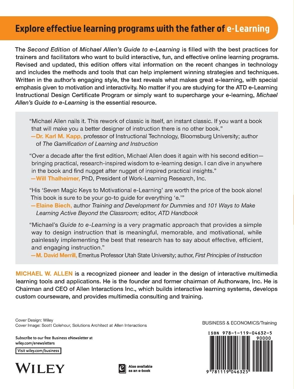 Michael Allen’s Guide to e-Learning: Building Interactive, Fun, and Effective Learning Programs for Any Company, Second Edition presents best practices for building interactive, fun, and effective online learning programs. This engaging text offers insight regarding what makes great e-learning, particularly from the perspectives of motivation and interactivity, and features history lessons that assist you in avoiding common pitfalls and guide you in the direction of e-learning success. This updated edition also considers changes in technology and tools that facilitate the implementation of the strategies, guidelines, and techniques it presents.
