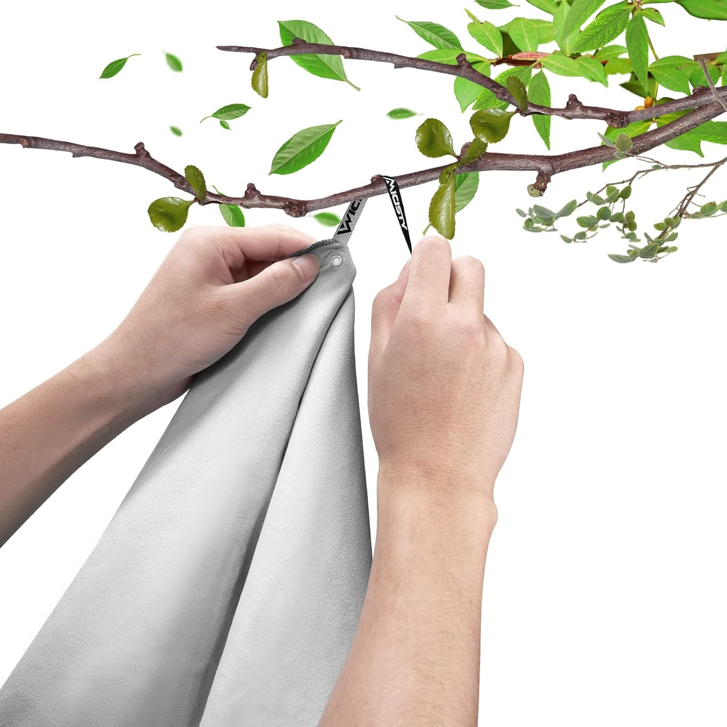 【ULTRA COMPACT & LIGHT WEIGHT】 Easy to carry and space saving.Each travel towel comes a quick-snap hang loop for easy hanging on a towel rack, branch at a campsite, or even on your beach umbrella.