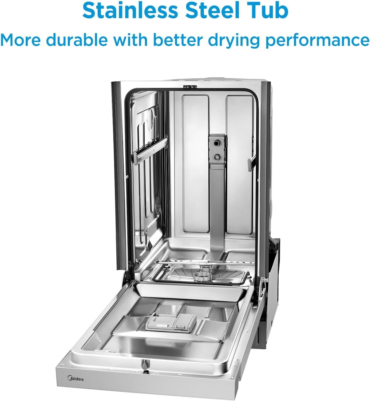 Midea MDF18A1AST Built-in Dishwasher with 8 Place Settings, 6 Washing Programs, Stainless Steel Tub, Heated Dry, Energy Star