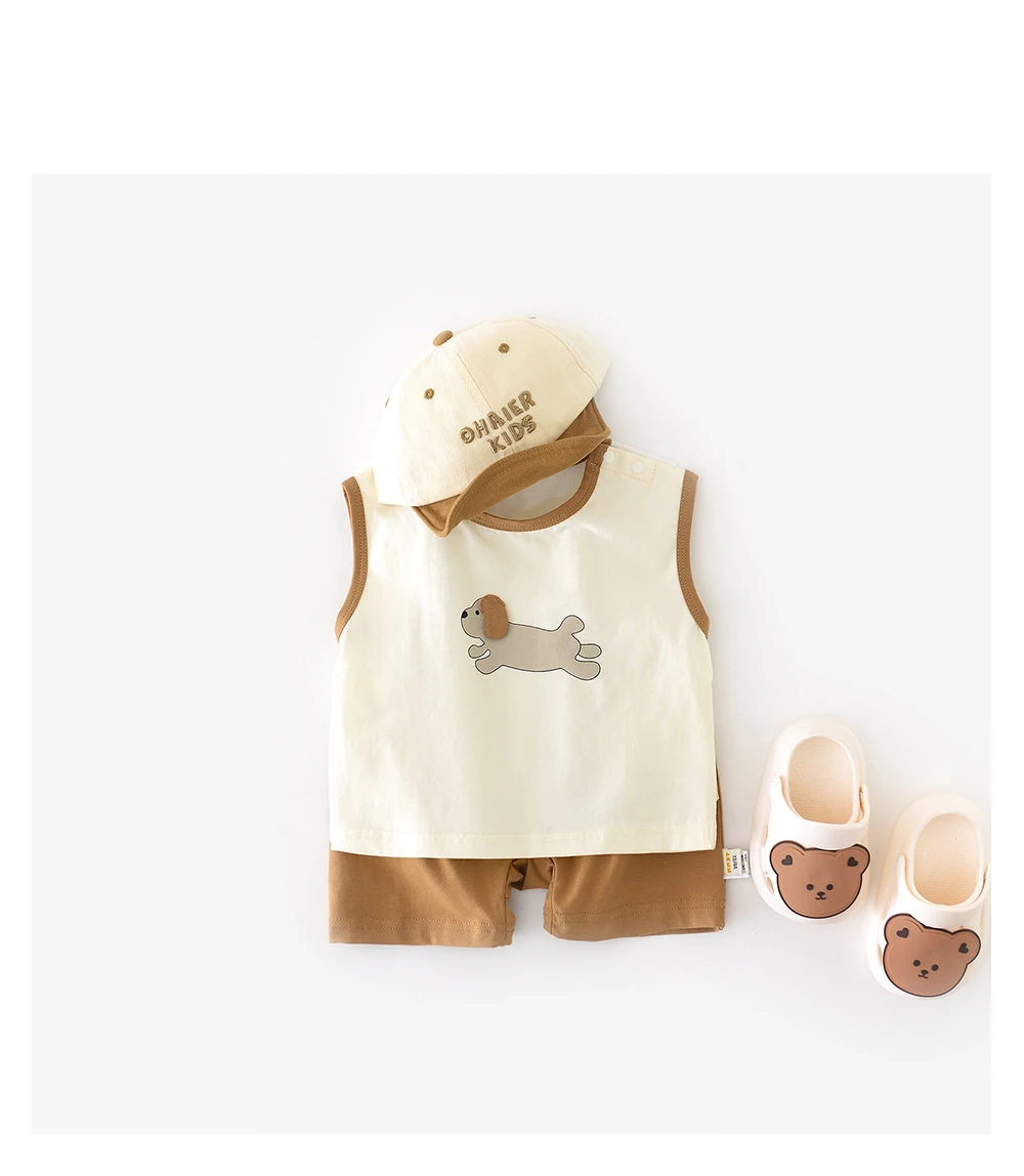 1. **Cute Cartoon Design**: The adorable dog – themed pattern on the sleeveless top adds a playful and charming touch, appealing to both babies and parents.