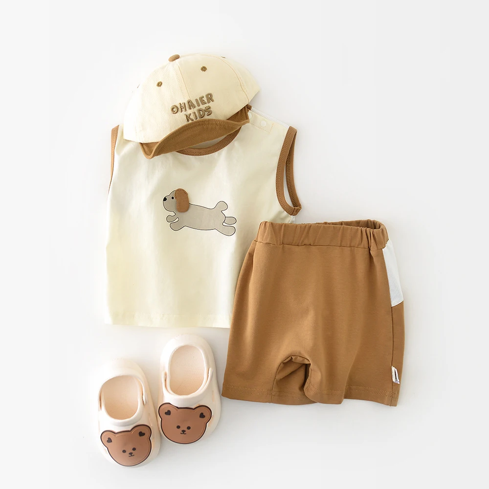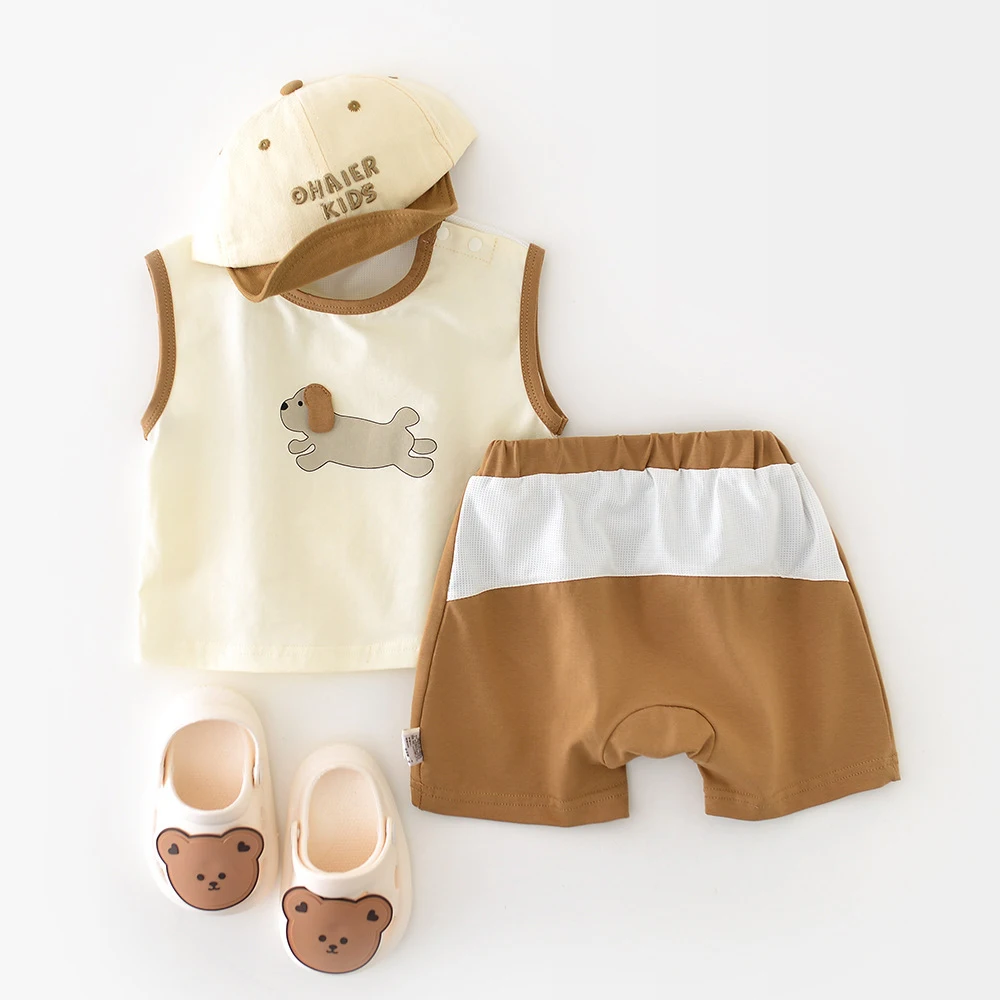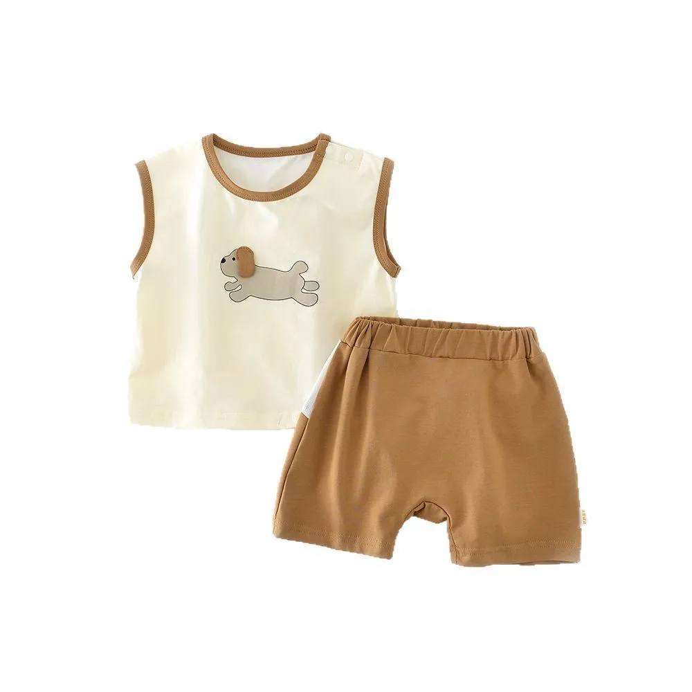 MILANCEL New Summer Baby Clothes Set 0-3T Cartoon Dogs Color Block Boys Vest +Shorts Infant Outfit 2PCS