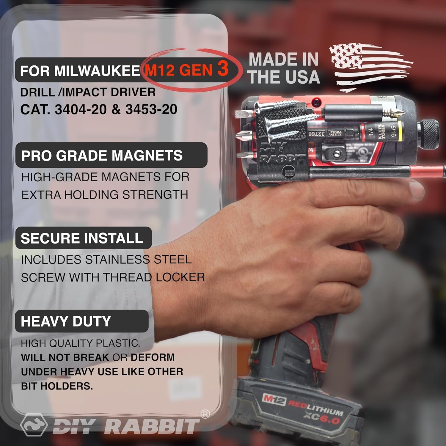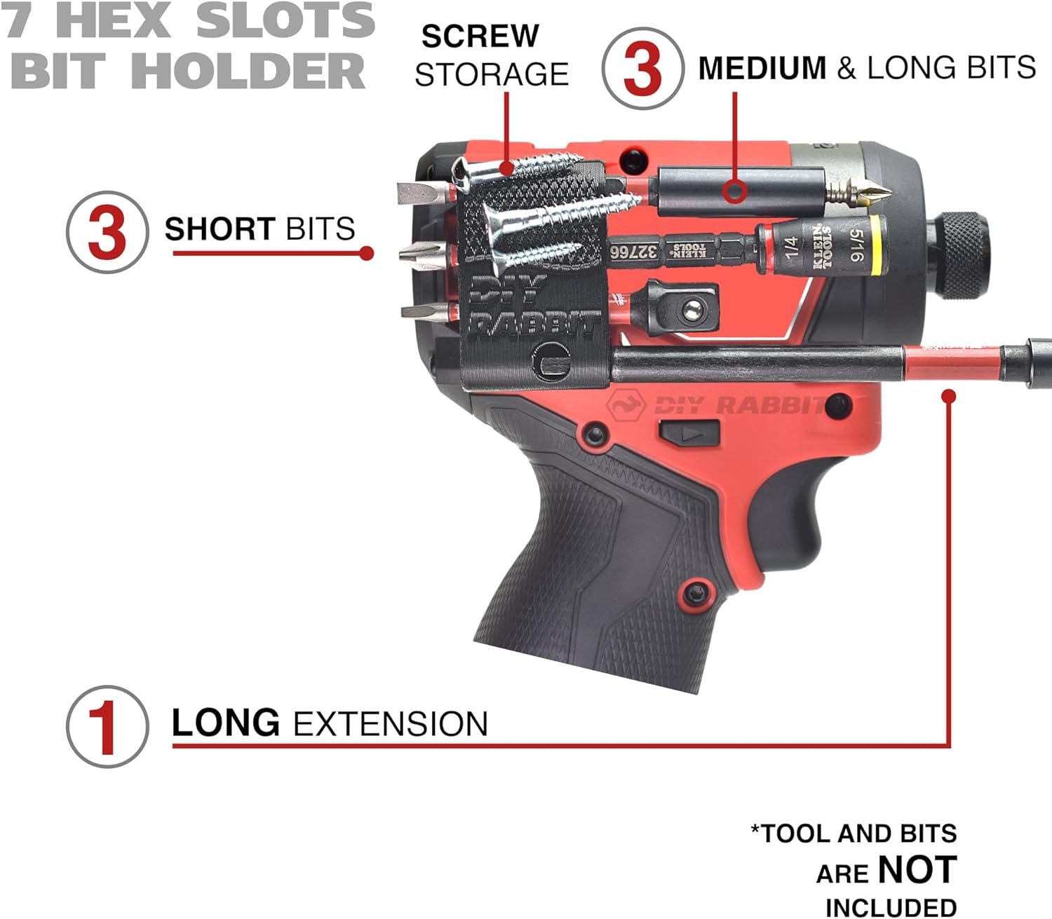 Milwaukee Bit Holder for M12 Gen 3 Fuel Impact Drivers with 7 Magnetic 1/4 Hex Bit Set Organizer. Custom Made for M12 Fuel 3453-20 & 3404-20 – M12 Tools Accessories