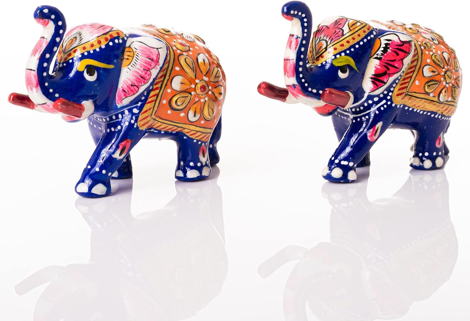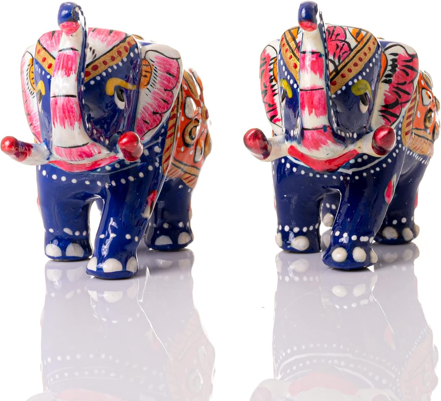 Minakari Traditional Indian Rajasthani Décor Hand Painted Festive Decoration Showpiece for Table Home Office and Gifting (Blue Elephant Set of 2)