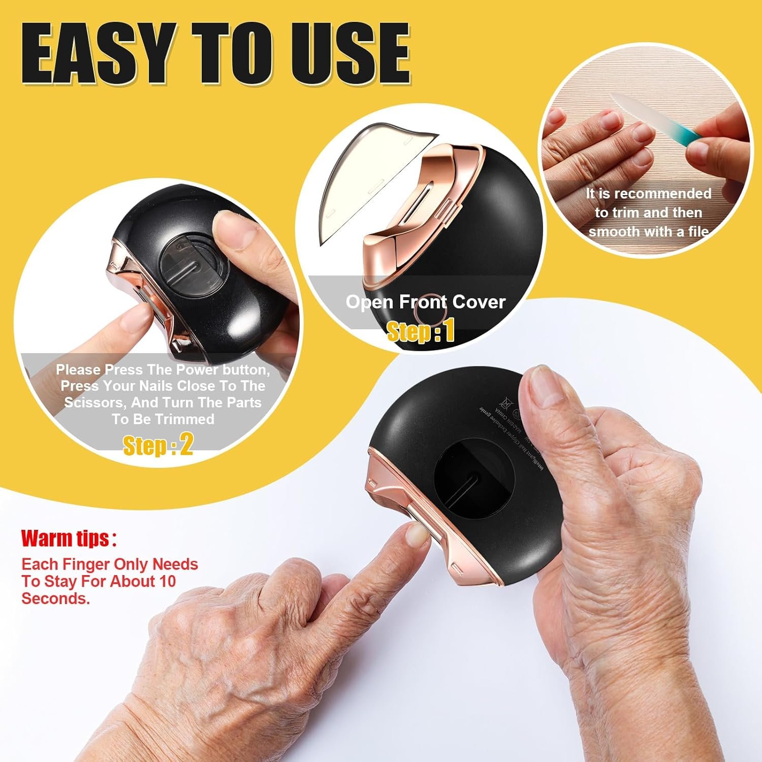 Minatee Automatic Nail Clipper, Electric Nail Clippers Safety Fingernail Cutter Nail Trimmer Scissors Gift for Caregivers, Elderly, Adults, Children, Care Communities(Black)
