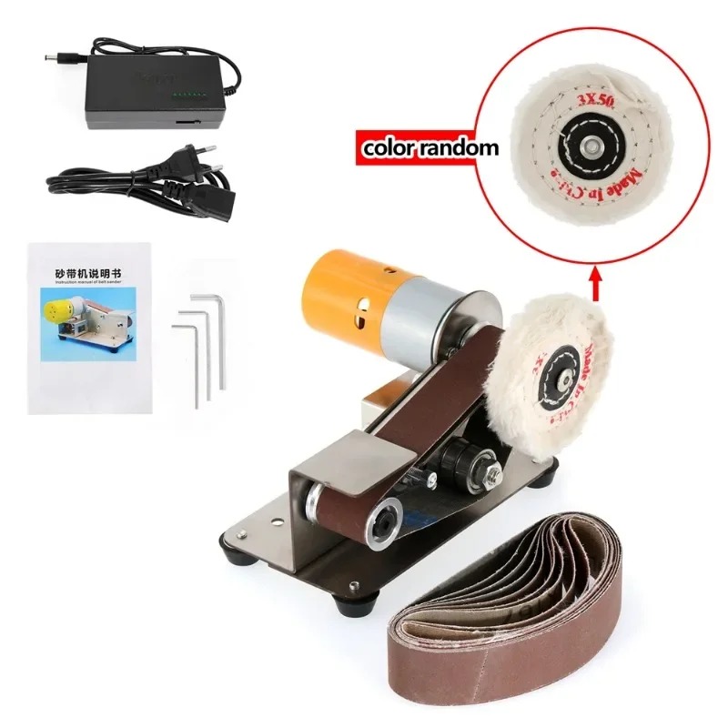 Mini Belt Grinding Machine 15 Degree Electric Belt Sander Polishing Grinding Tool Cutter Knife Edges Sharpener with 10 Belts