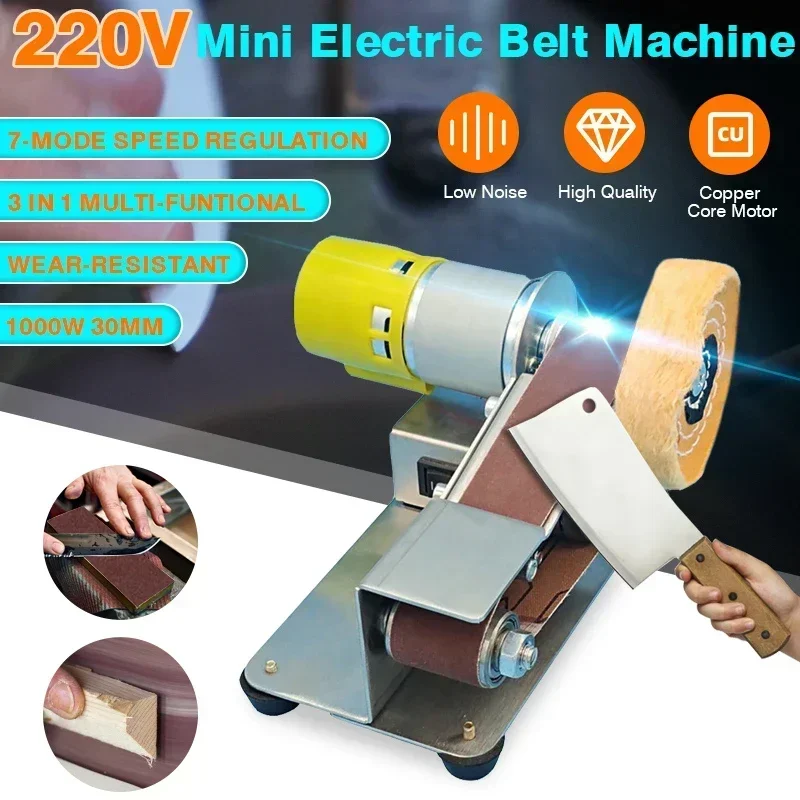 Mini Belt Grinding Machine 15 Degree Electric Belt Sander Polishing Grinding Tool Cutter Knife Edges Sharpener with 10 Belts
