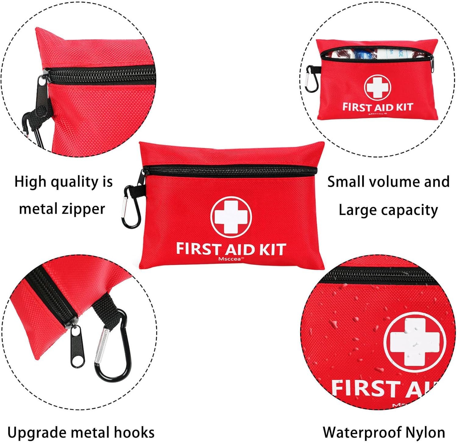 🏥【FIRST AID SUPPLIES】The first aid kit is equipped with various standardized and necessary tools, such as stainless steel tweezers, scissors, safety pins and various other first aid items. You can also add your own items at will, there is enough space to pack your own unique items.