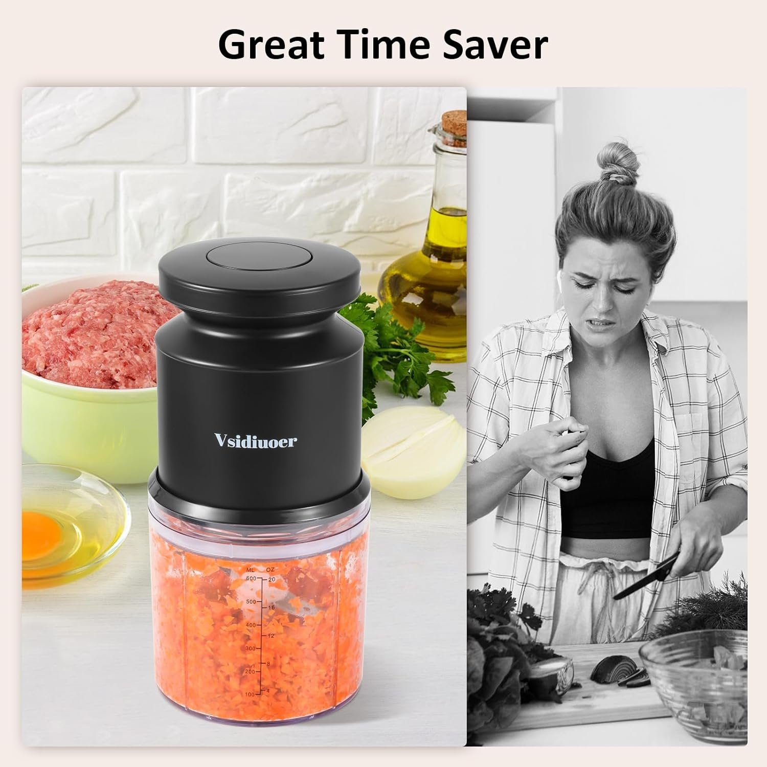 Easy to Use: The lid of the food chopper will not come off easily when it is covered, preventing food from spilling out during the mixing process. Easy to use, press the button on the top of the motor head, the electric food chopper starts, release to stop. Tips and Services: