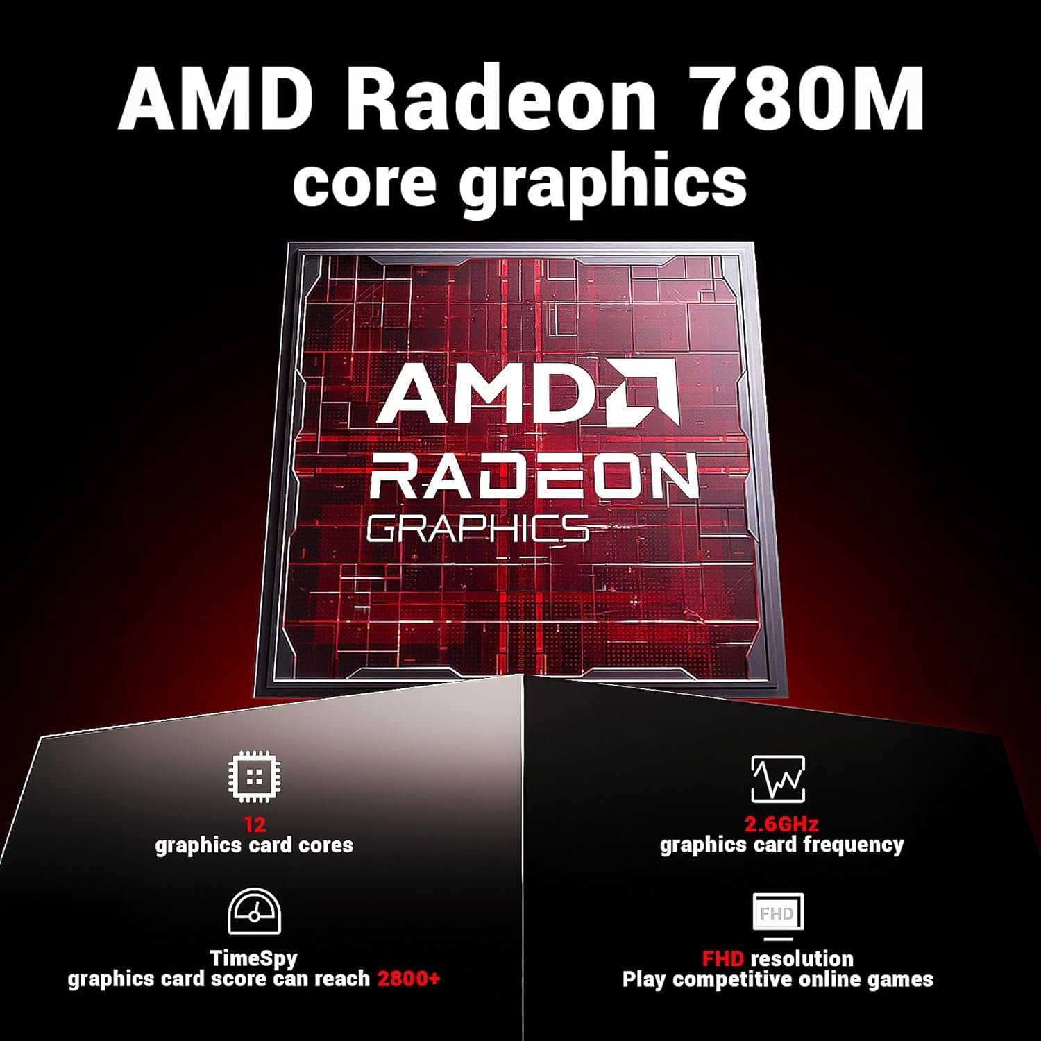 【AMD RYZEN 7 8745HS Processor】FIREBAT MN56 Gaming Mini-Console Equipped with AMD Ryzen7 8745HS processor (8C/16T, 16M Cache, up to 4.9GHz), with maximum power consumption 65W/balanced 54W/TDP 45W. Equipped with AMD Radeon 780M integrated graphics, featuring Zen4 architecture, 8GPU cores, graphics frequency of 2600MHz, performance close to the dedicated graphics card.