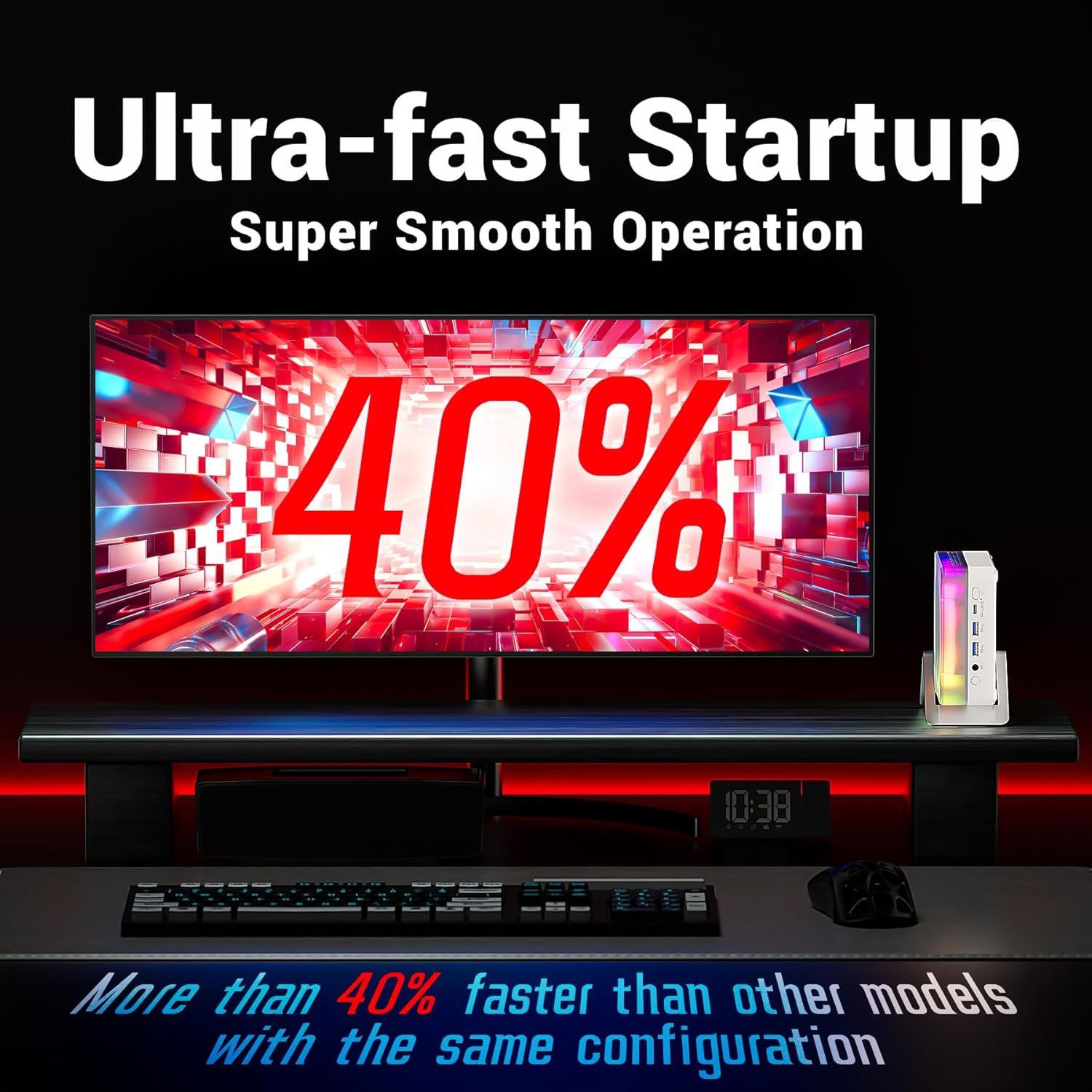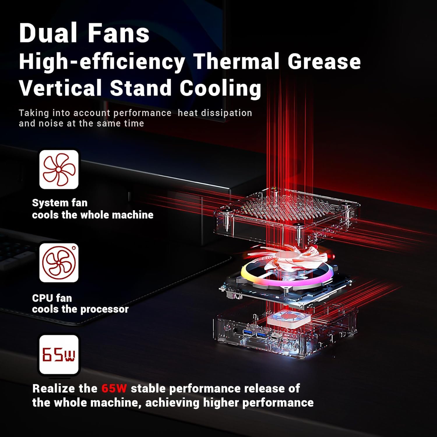 【4K Triple Display Output】Mini PC office supports HDMI 2.1, DP 1.4, and USB4 triple display output, and the GPU utilizes Radeon Graphics (8GPU cores) clocked at 2600MHz to support ultra-immersive 4K visual effects for incredible clarity and maximum work efficiency.