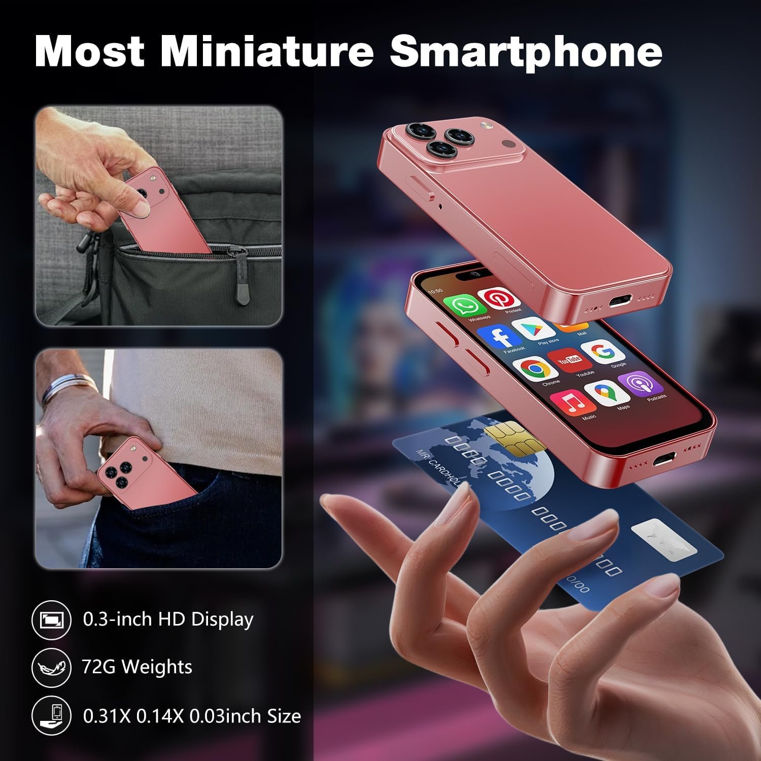 【Portable Mini Phones & One-Hand Friendly】Experience convenience with our incredibly compact 4.0-inch mini phones, designed smaller than a bank card for effortless one-handed use. The lightweight pocket design makes this mini phones an ideal choice for travel, fitness or daily business trips, ensuring that you won’t miss a call or message during your journey