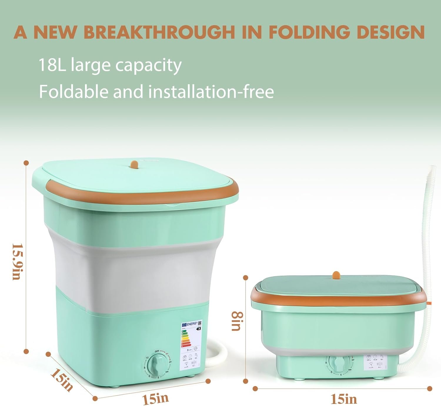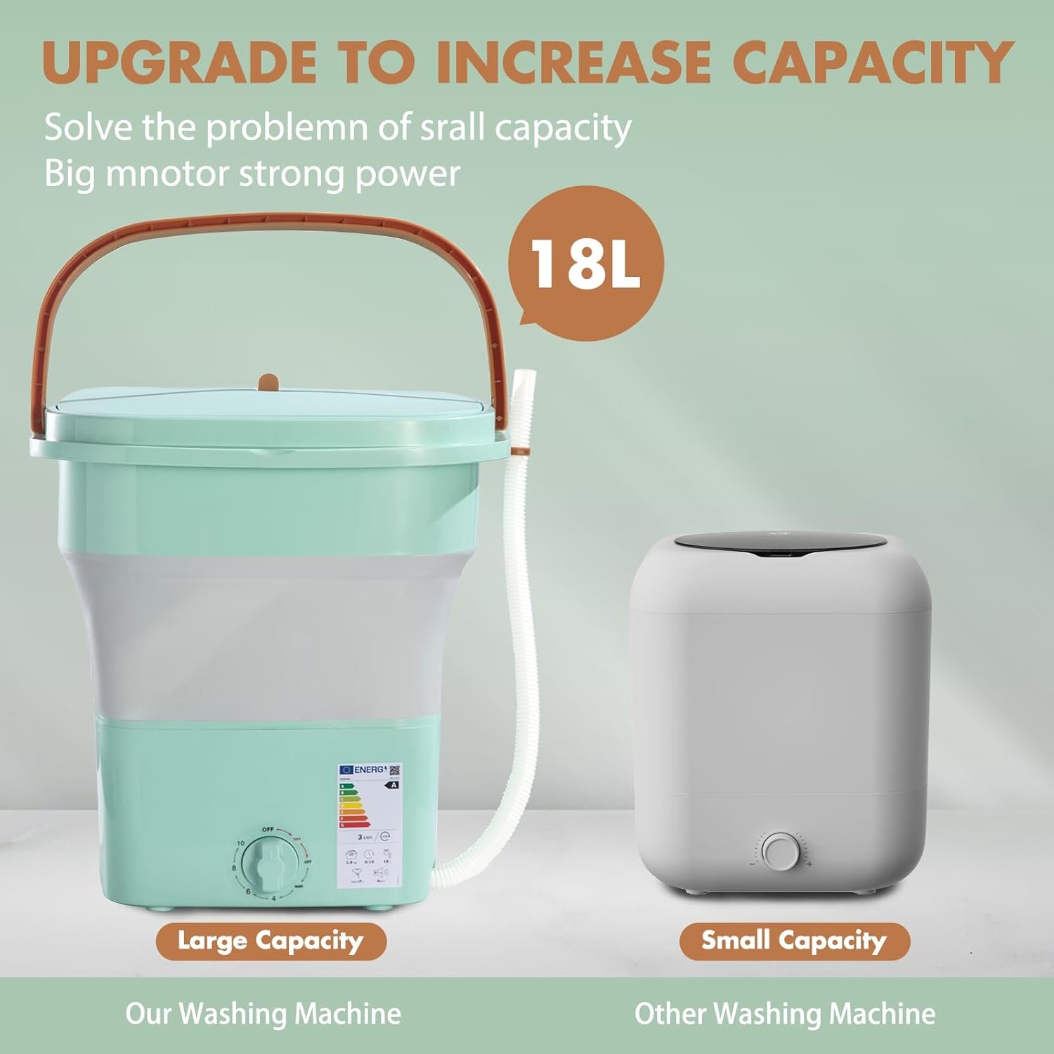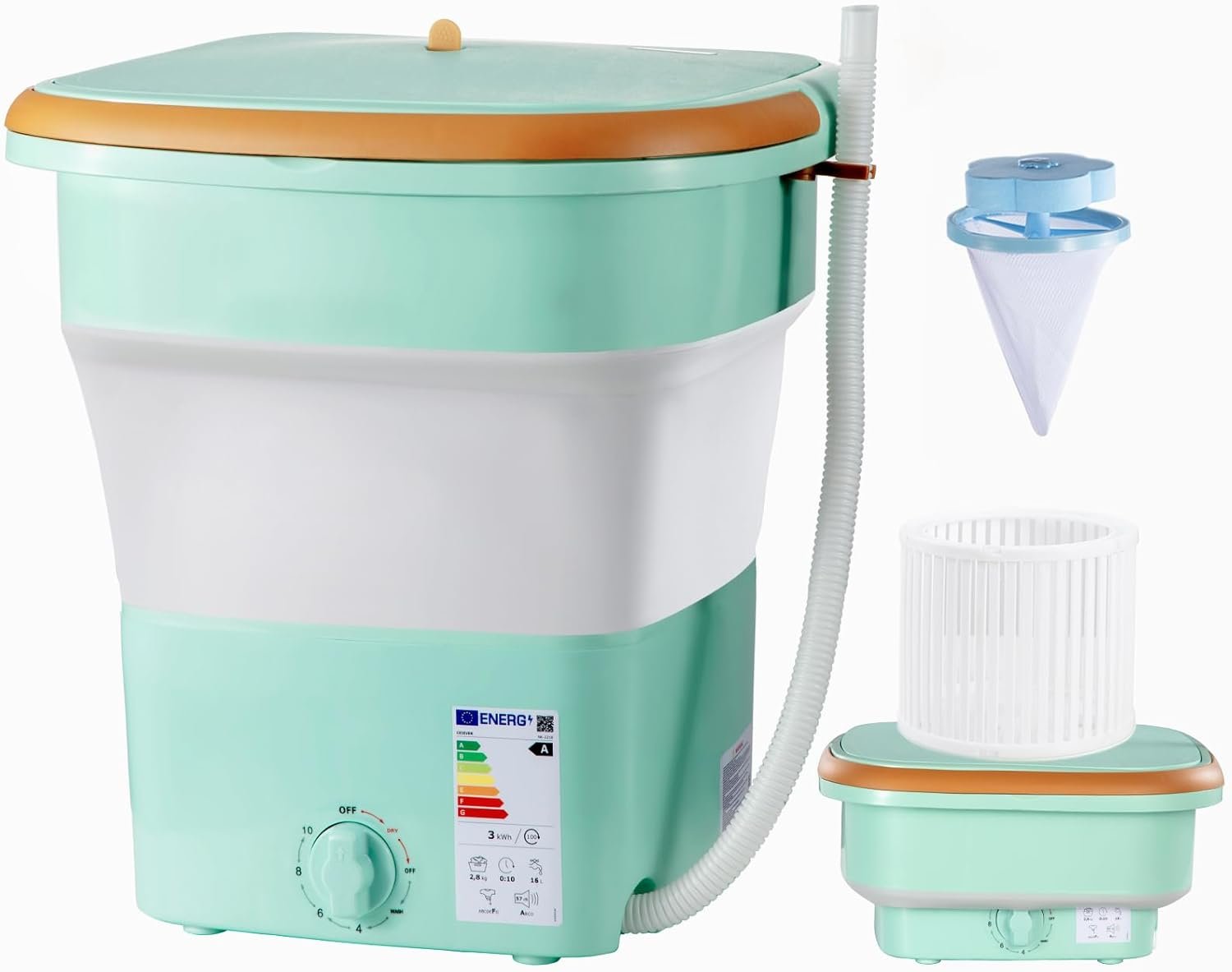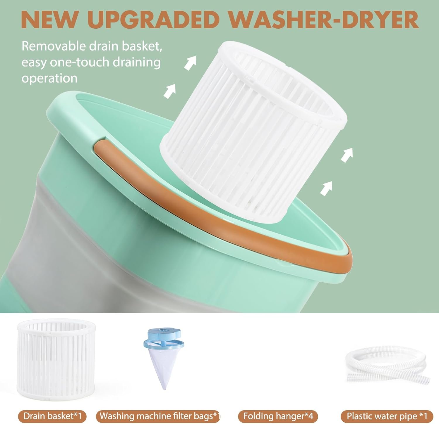 【Portable Dryer & Washer】With an 18L capacity—twice that of 11L—it features both washing and drying functions for faster laundry. (Note: The drain basket reduces dripping but doesn’t fully drain water.)