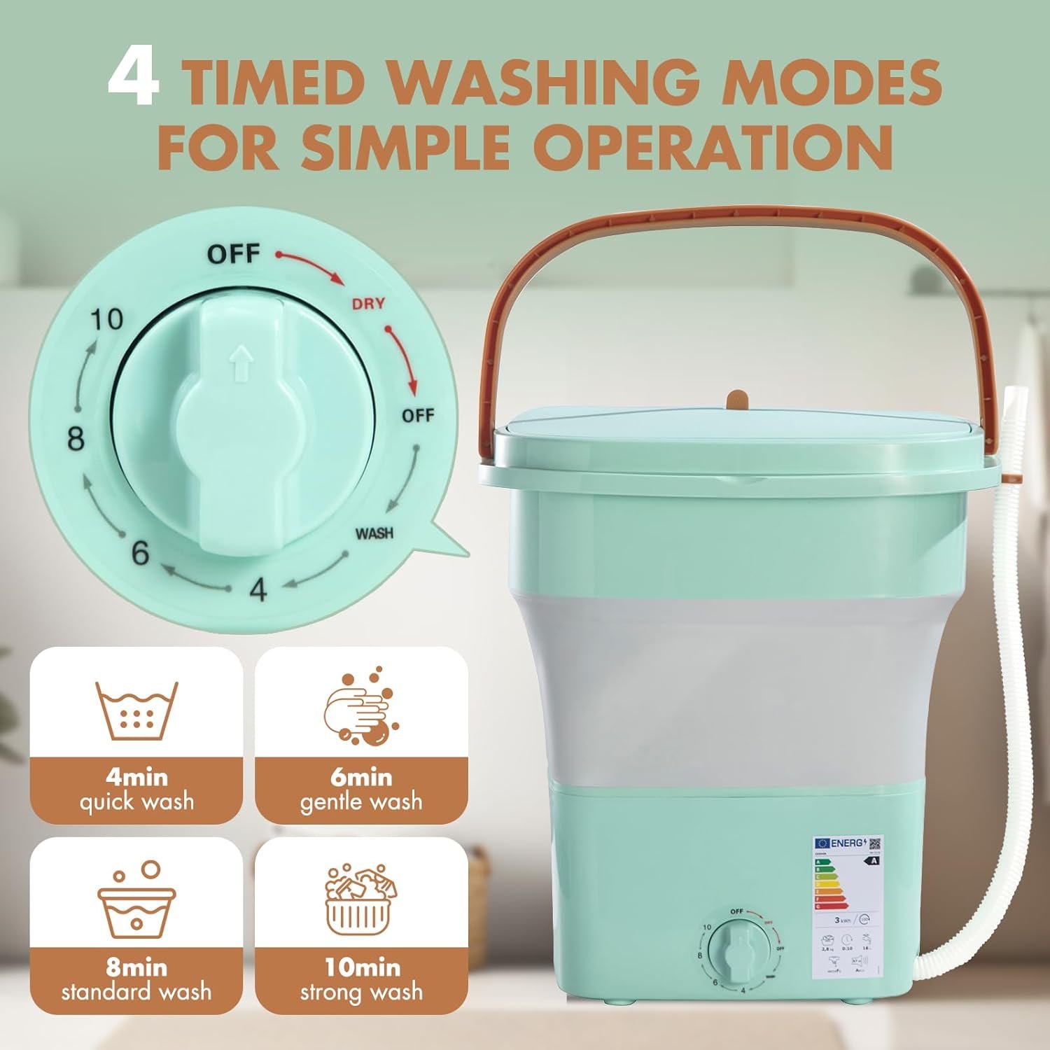 【Easy Operation】Set wash time (4-10 mins), add clothes/water, start. Includes detachable spin basket for drying.