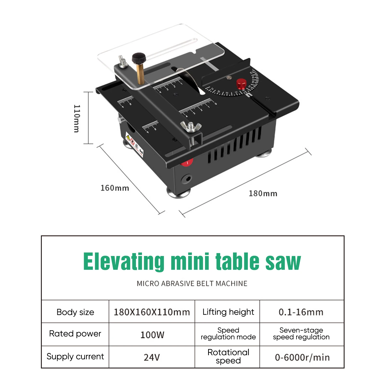 Table saw size: 180 * 140 * 60mm / 7.09 * 5.51 * 2.36 inches