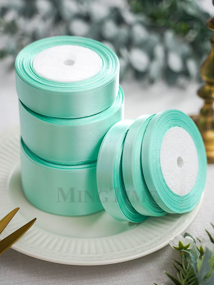 Mint Green Satin Ribbon 25yards 6mm 10mm 15mm 25mm 38mm 50mm Sash Gift Bow Handmade DIY Craft Wedding Party Supply Decoration