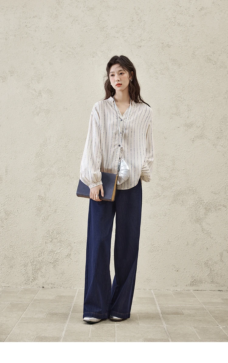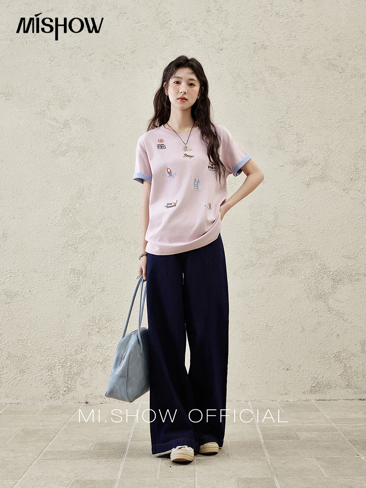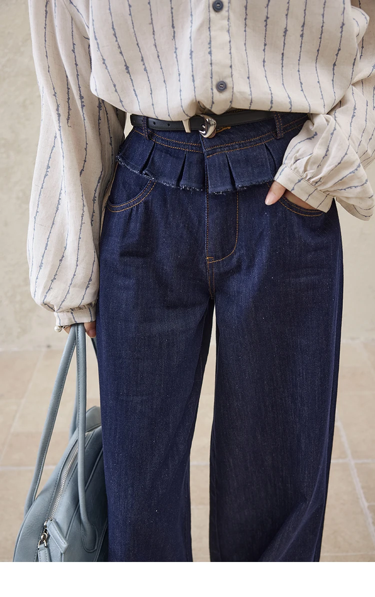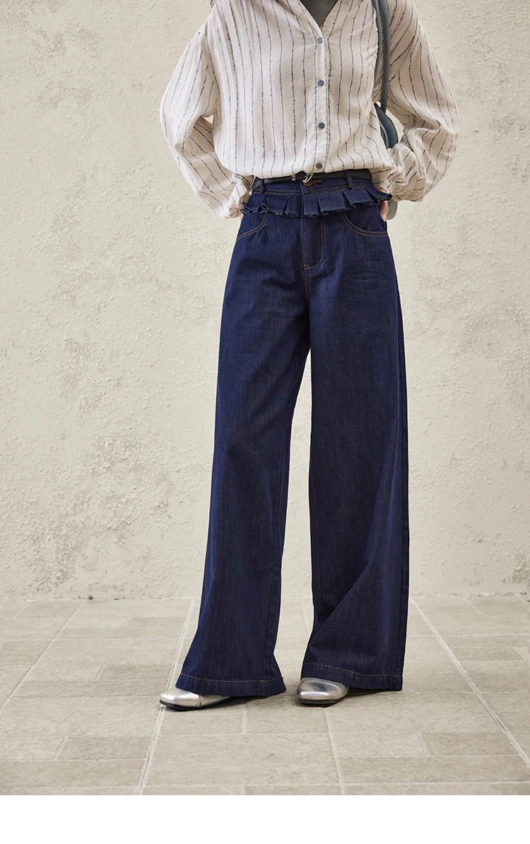 MISHOW Casual Spring Summer Jeans for Women 2025 Stitching Ruffle High Waist Jeans Female New Fashion Wide Leg Pants MXE16K0907
