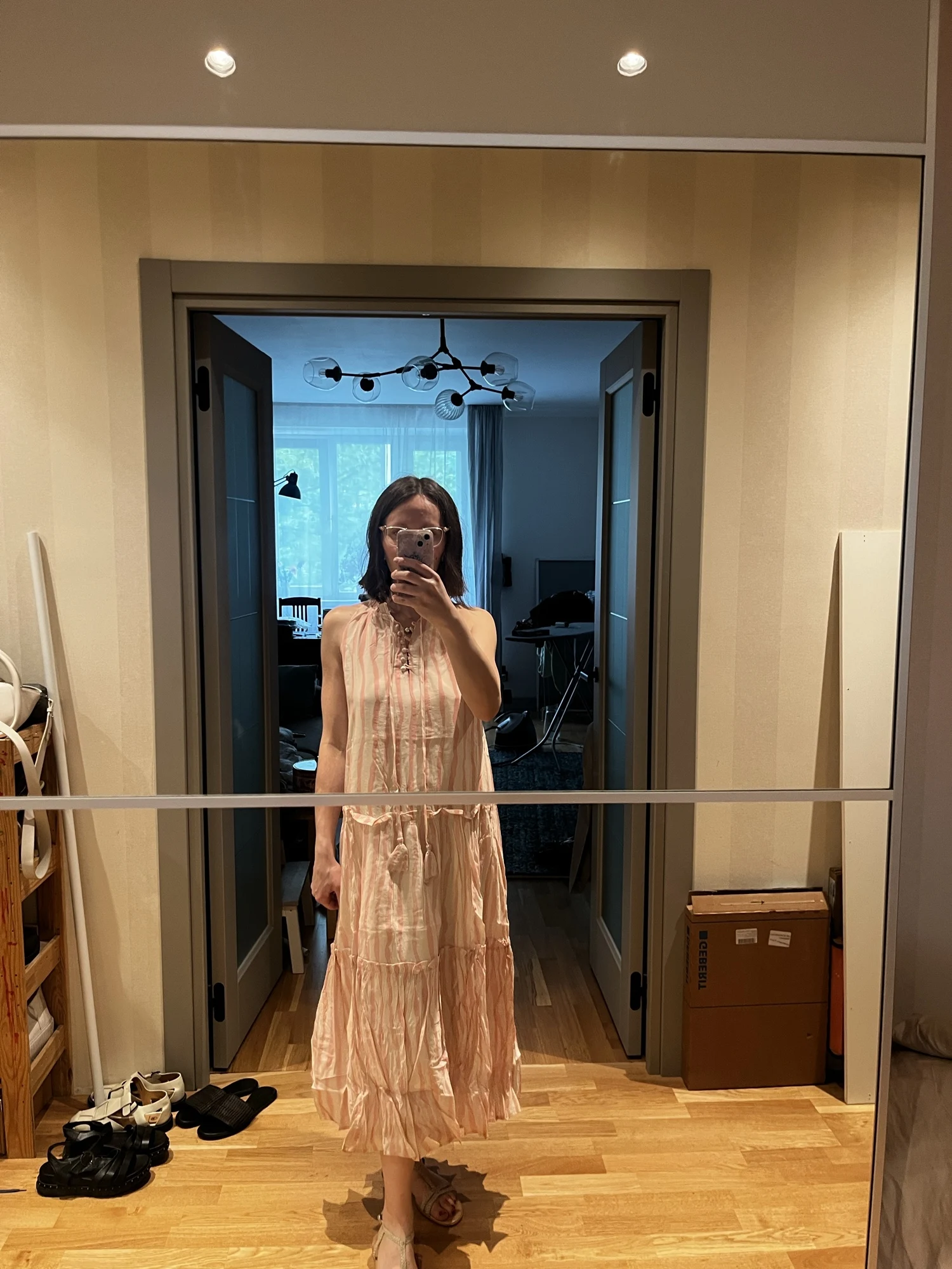 2 reviews for MISHOW Hanging Neck Striped Dress for Women 2024 Summer French Tea Break Camisole Dress Sweet Vacation Long Dresses MXD30L1951