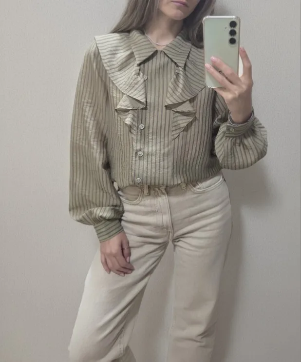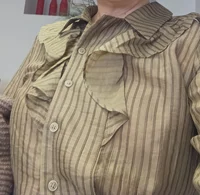 3 reviews for MISHOW Retro Button Long Sleeved Striped Shirt for Women 2024 Autumn Korean Flounce Polo Neck Casual Tops Office Lady MXD41C0321