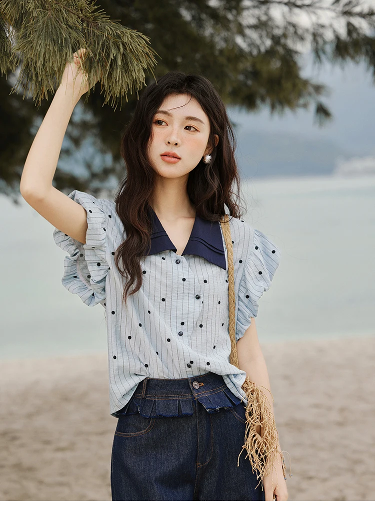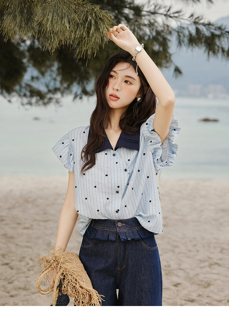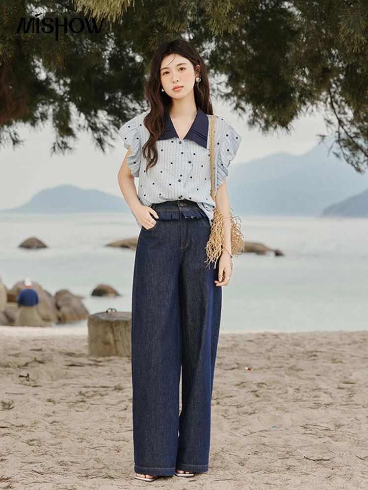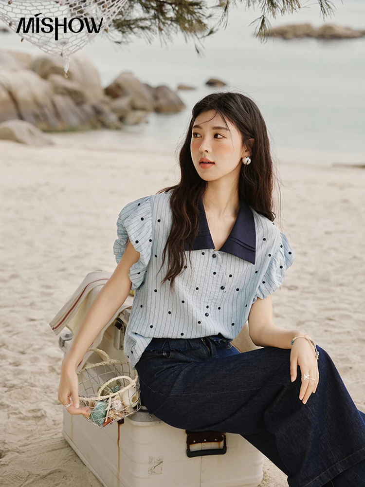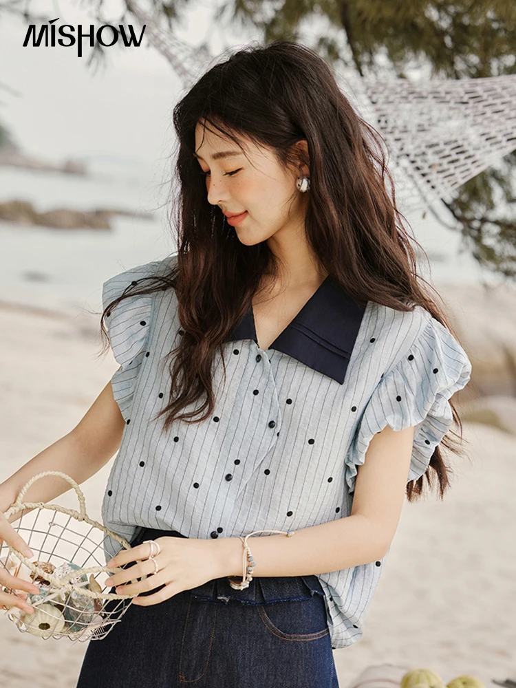 MISHOW Summer Office Lady Blouses Women 2025 Short Sleeve Turn-down Collar Polka Dot Shirts Female Fashion Slim Tops MXE31C0776
