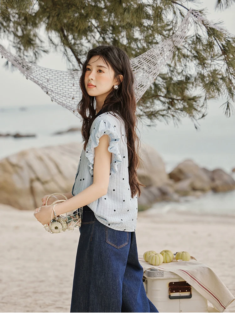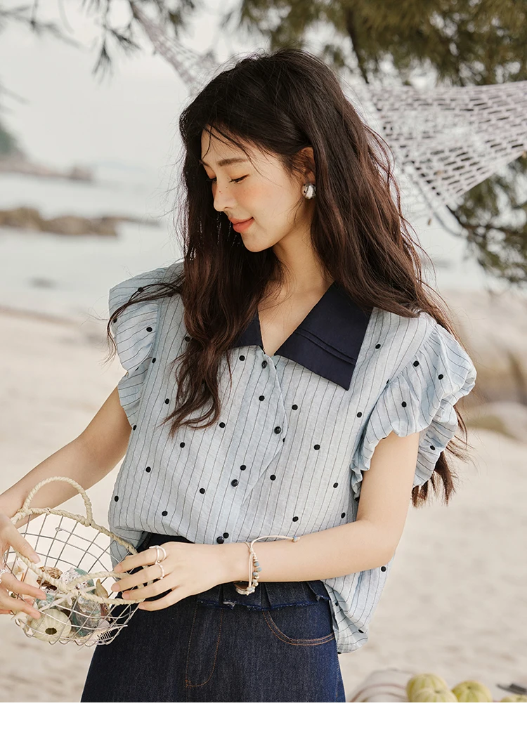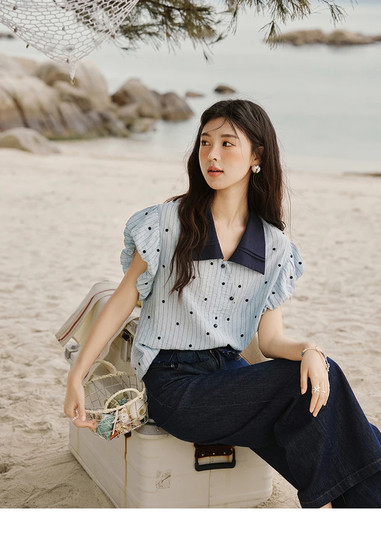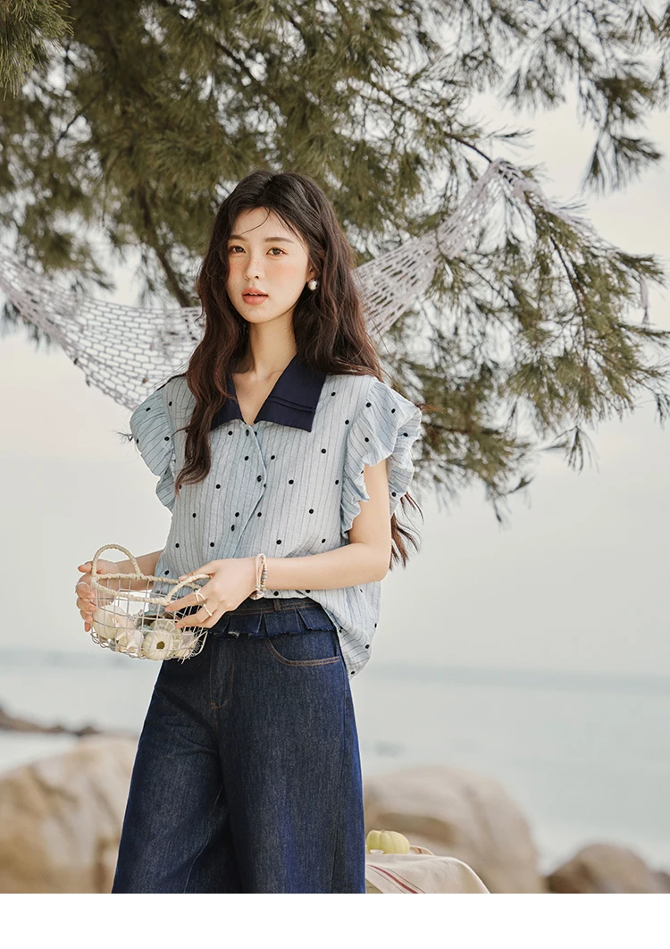 MISHOW Summer Office Lady Blouses Women 2025 Short Sleeve Turn-down Collar Polka Dot Shirts Female Fashion Slim Tops MXE31C0776