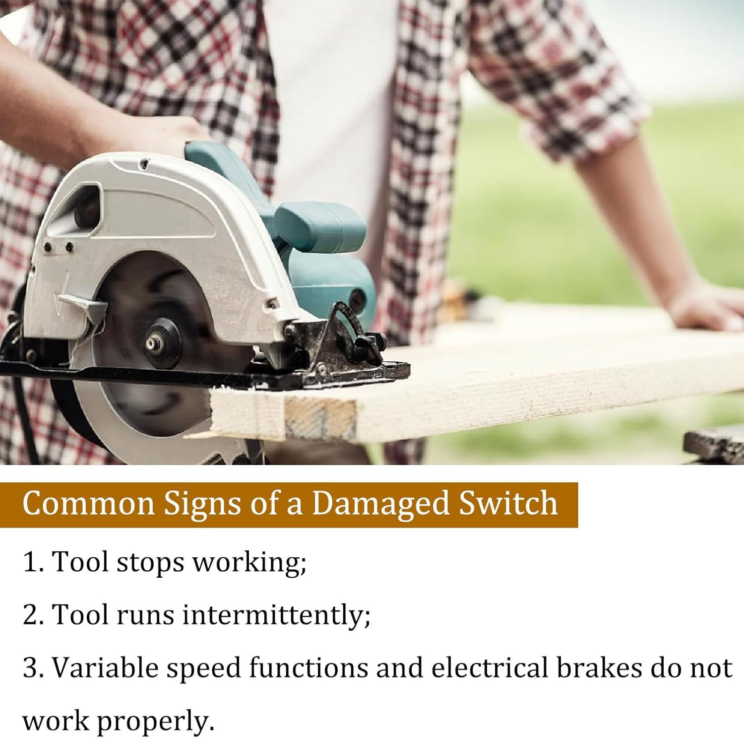 【Common Signs of a Damaged Switch】 1. Tool stops working; 2. Tool runs intermittently; 3. Variable speed functions and electrical brakes do not work properly.